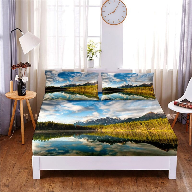 It’s time to upgrade your bedding with this beautiful and premium-quality Lake Digital Printed Fitted Sheet Mattress Cover. Designed in a soft hand-feel fabric and featuring accents at the corners for ultimate style, this blanket is sure to improve the look of your bedroom. This sheet is sure to last you a long time, as it is made from polyester and cotton blend for extra durability.