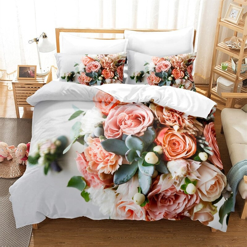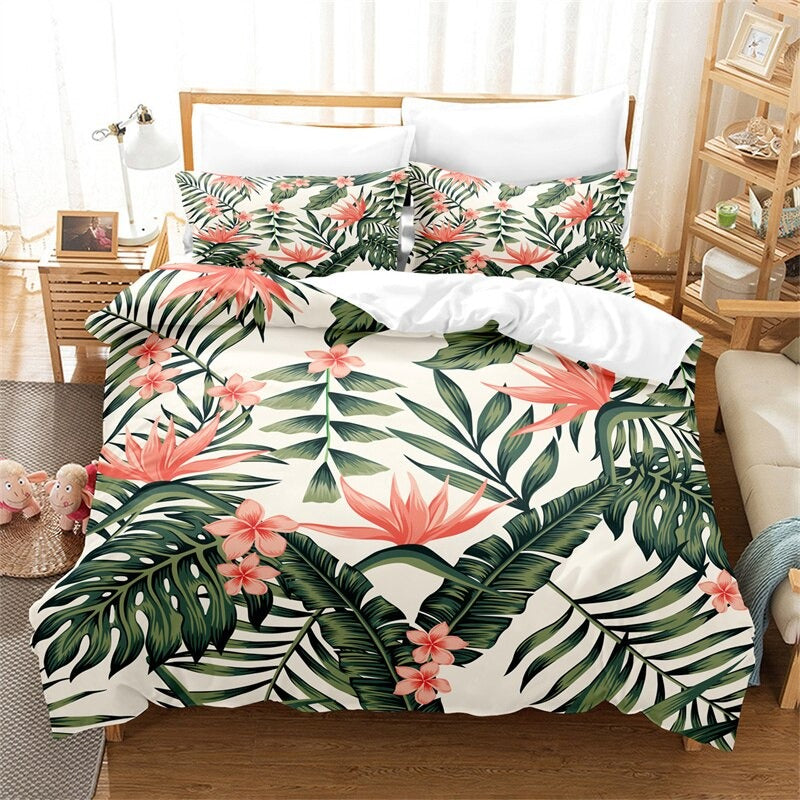 With this cheerful Leaves, Flowers Duvet Cover Set, you can bring the holidays into your bedroom. This set, which is ideal for the winter, will keep you warm and comfortable with its supple and cozy covers. With this distinctive and fashionable bedding set, you may experience a little bit of vacation all year long. This bedding set, which has a traditional flower pattern, is guaranteed to add a little additional happiness to your bedroom. So prepare to cozy up with this lovely duvet cover and pillowcase set and revel in a winter paradise.
