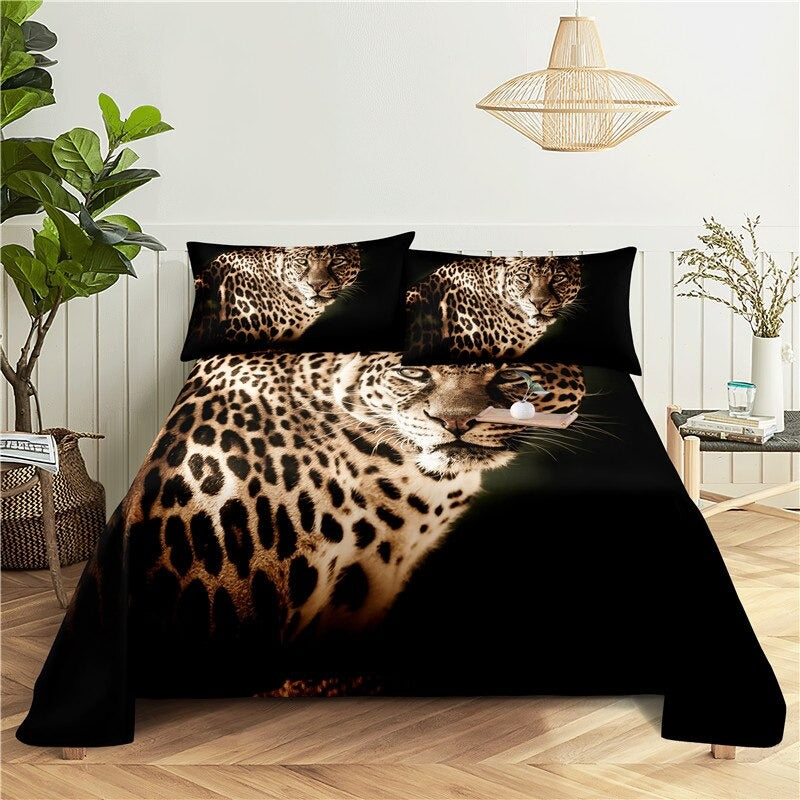 This Leopard Polyester Digital Printed Bedding Set is perfect for adding a touch of wildness to your bedroom space. The set includes a comforter, 1 fitted sheet, 1 flat sheet, and 2 pillowcases. The bold leopard print is printed onto soft polyester fabric, making it both stylish and comfortable. Additionally, it's easy to care for and machine washable. With its alluring design, this bedding set is sure to make your bedroom the envy of your family and friends.