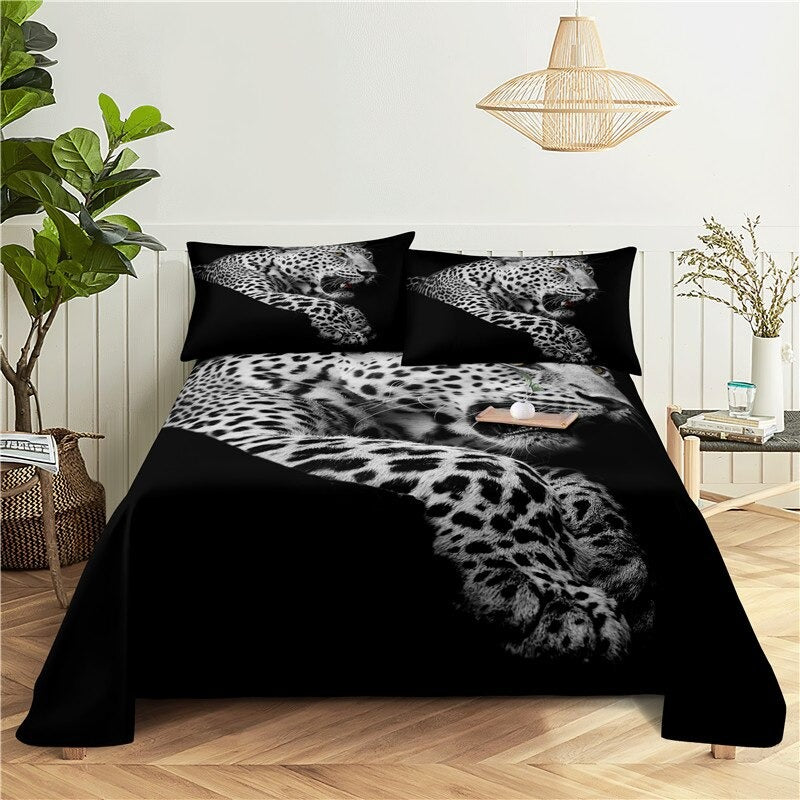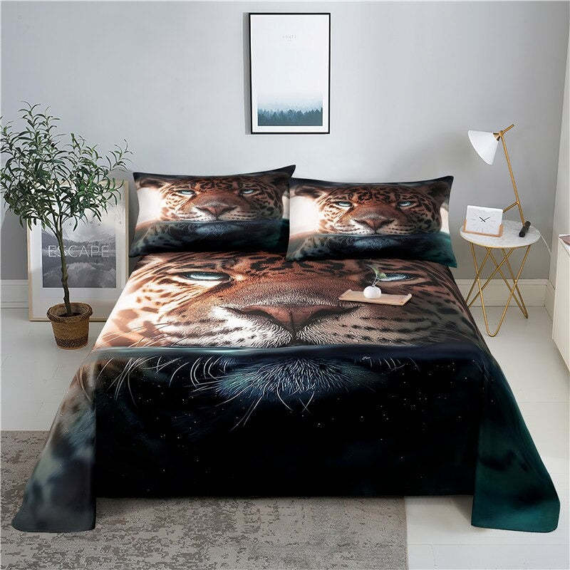 Leopard Print Bedding Set is a type of bedding that features a leopard with a realistic face spotted pattern on the fabric. It is typically made of polyester, which is a synthetic material that is known for its durability and easy care. Leopard print bedding is a popular choice for those who want to add a touch of wildness and glamour to their bedroom decor.