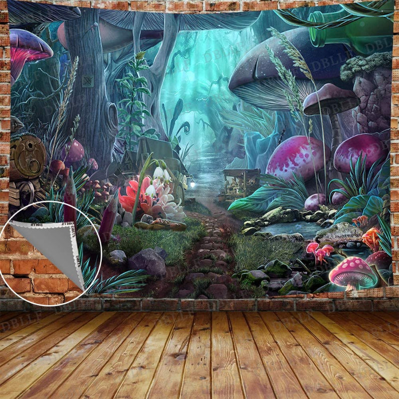 You can make improvements to your house and give it a magic mushroom ambiance by using this forest Tapestry. The mushroom-inspired tapestry's unusual style is eye-catching, blends seamlessly with your wall, and has a fantasy pattern that makes it even more stunning to reflect your room at night. They have a landscape design and are constructed of premium cotton, which adds to their appeal. Choose the size you want based on the possibilities and the available space.