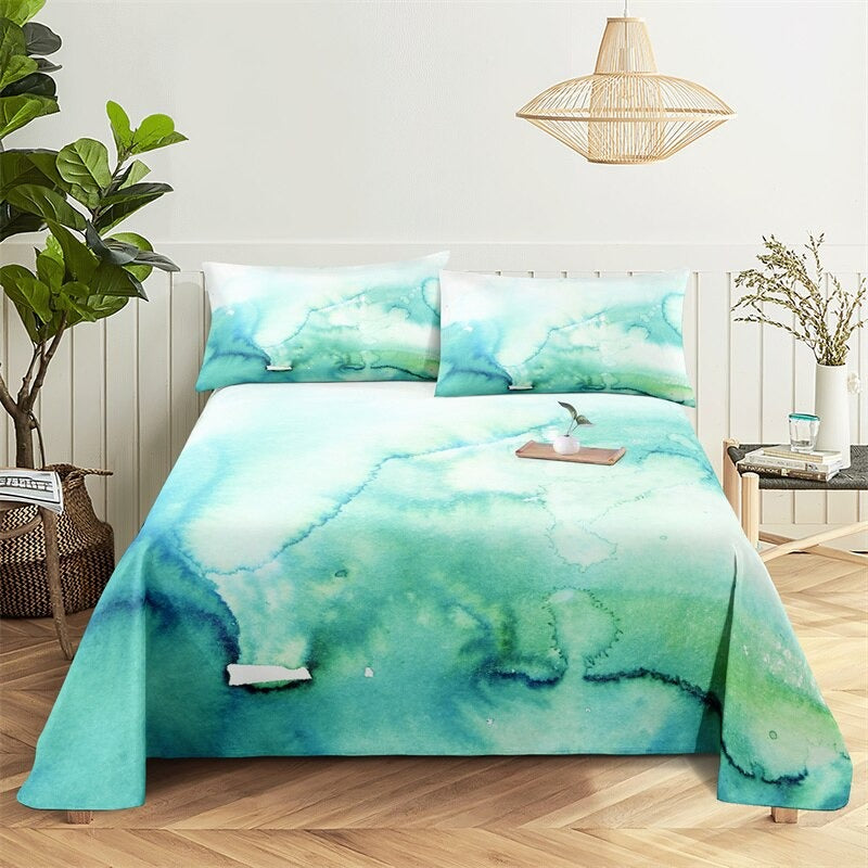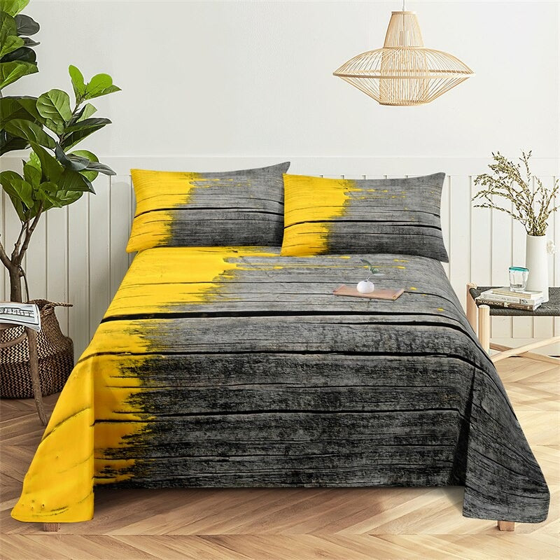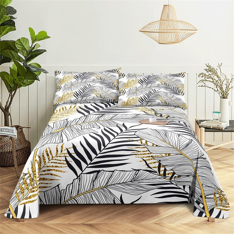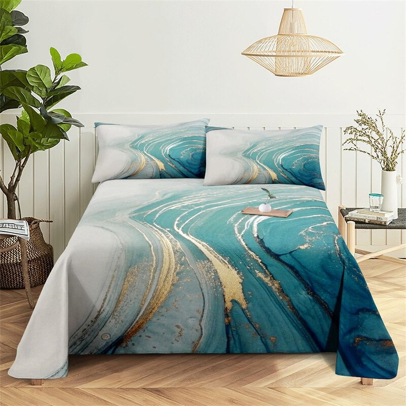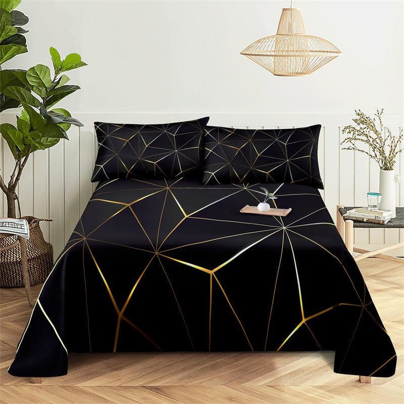 The Marble Grain, Gold Sheets Digital Printed Polyester Bed Sheet Set is a luxurious and stylish addition to any bedroom. The digital printing process ensures that the colors are vibrant and long-lasting, so you can enjoy the sophisticated look of these sheets for years to come. The fitted sheet has elastic corners to ensure a snug and secure fit on any mattress, and the flat sheet and pillowcases have a simple, classic design that complements the marble grain print.