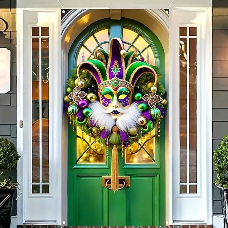Crafted from lightweight yet durable polyester, this festive door hanging is built for multiple seasons of use. The fabric is resistant to wear, ensuring that the vibrant colors stay bold and bright. Whether placed indoors or outdoors, this Mardi door banner retains its quality, making it a great investment for annual celebrations.