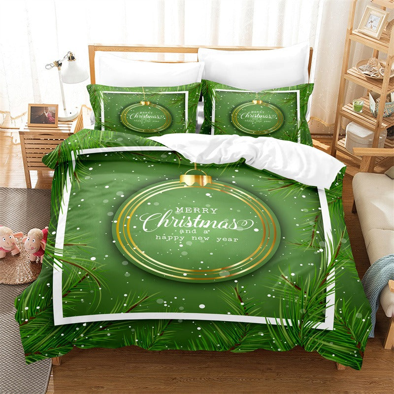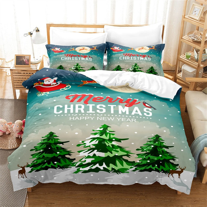 This beautiful Merry Christmas Duvet Cover Bedding Set will be the perfect addition to your holiday décor. Featuring a festive print of Christmas trees and snowflakes, this set will bring the holiday spirit to your bedroom. The set includes a duvet cover, two pillow shams, and a bed skirt, all made with high-quality polyester fabric for a smooth and soft feel that is sure to keep you comfortable all season long. The vibrant colors will brighten up any bedroom, and the intricate details make this set a must-have for any Christmas celebration.