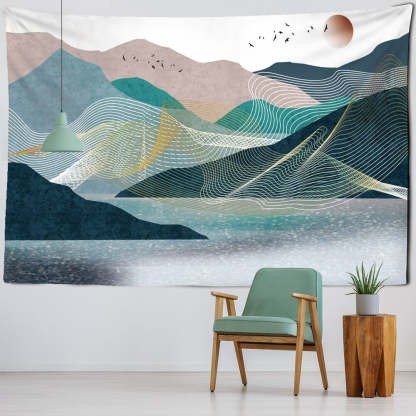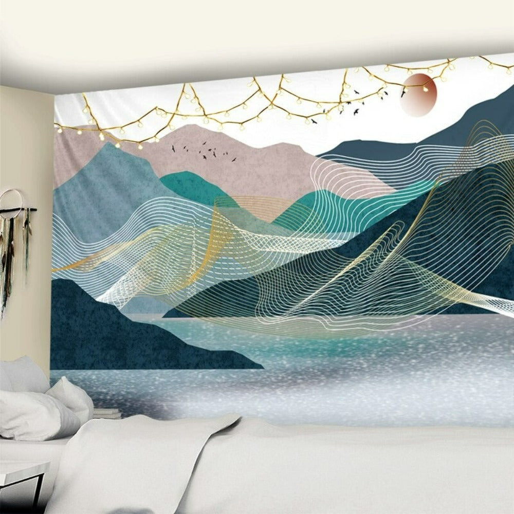 Minimalist Mountain Art Tapestry Wall Hanging Tapis Cloth has exquisite colors and clean finishing, making it a fantastic focal point for any room. These high-quality tapestries are intended to add a fashionable touch to your living room, hallway, or bedroom.