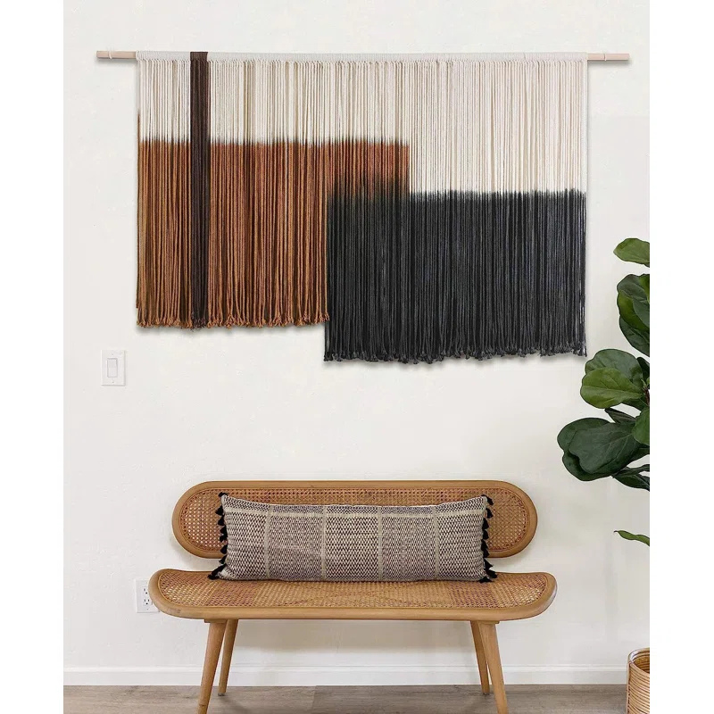 Add a contemporary bohemian touch to your decor with this Ombre Macrame Tapestry. Featuring a gradient fiber art design, this modern wall hanging seamlessly blends style and craftsmanship. The carefully woven handmade boho decor piece creates a cozy, artistic ambiance. Whether displayed in a bedroom, living room, or office, this woven art piece makes an eye-catching statement.