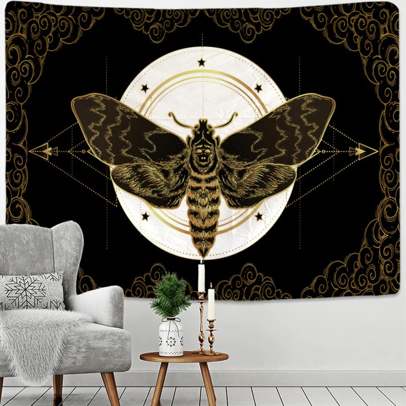 Moon Phase Moth Tapestry Wall Hanging Tapis Cloth has exquisite colors and clean finishing, making it a fantastic focal point for any room. These high-quality tapestries are intended to add a fashionable touch to your living room, hallway, or bedroom.