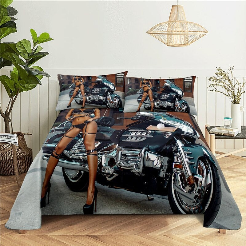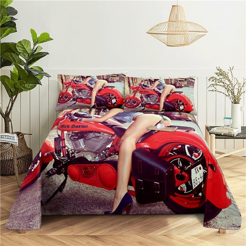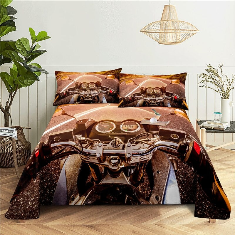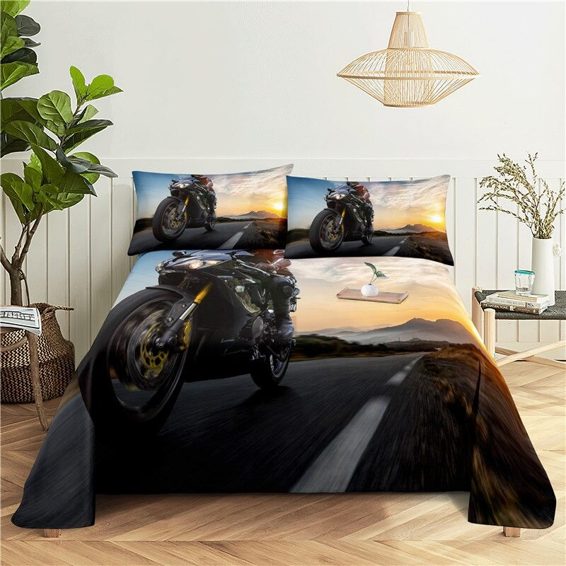 Motorcycle Bed Flat Bedding Set is a must-have for any motorcycle enthusiast. This bedding set is made of soft and durable polyester material providing a comfortable and long-lasting addition to your bed. The polyester material is machine washable making it easy to care for and maintain.