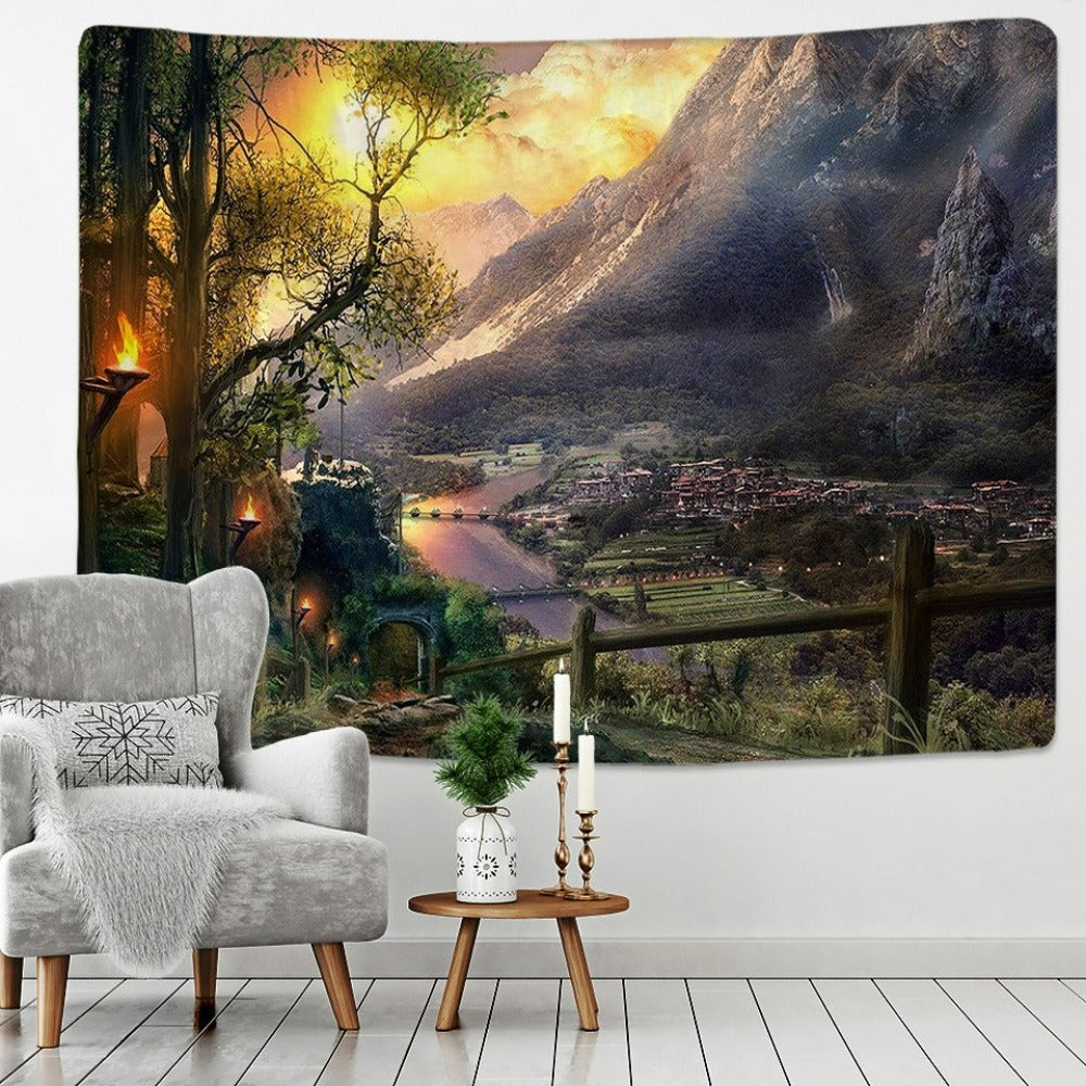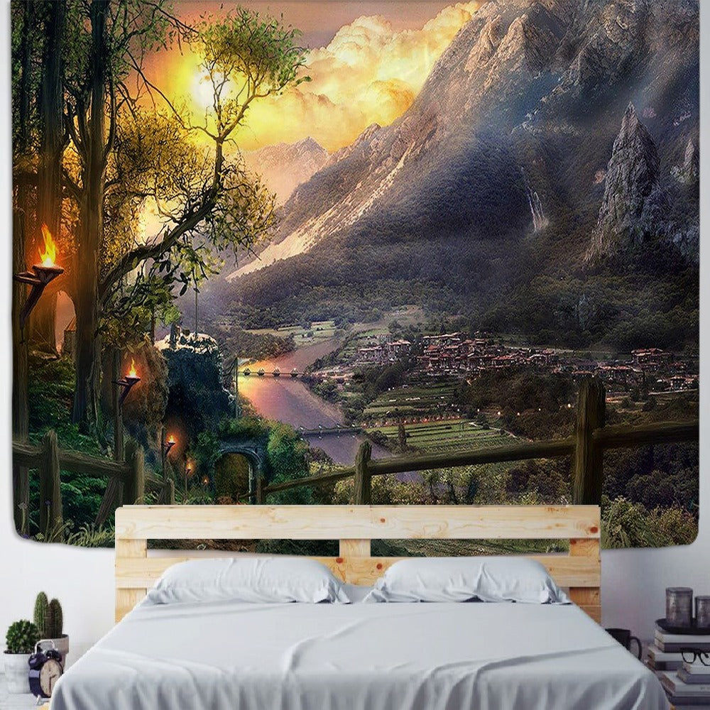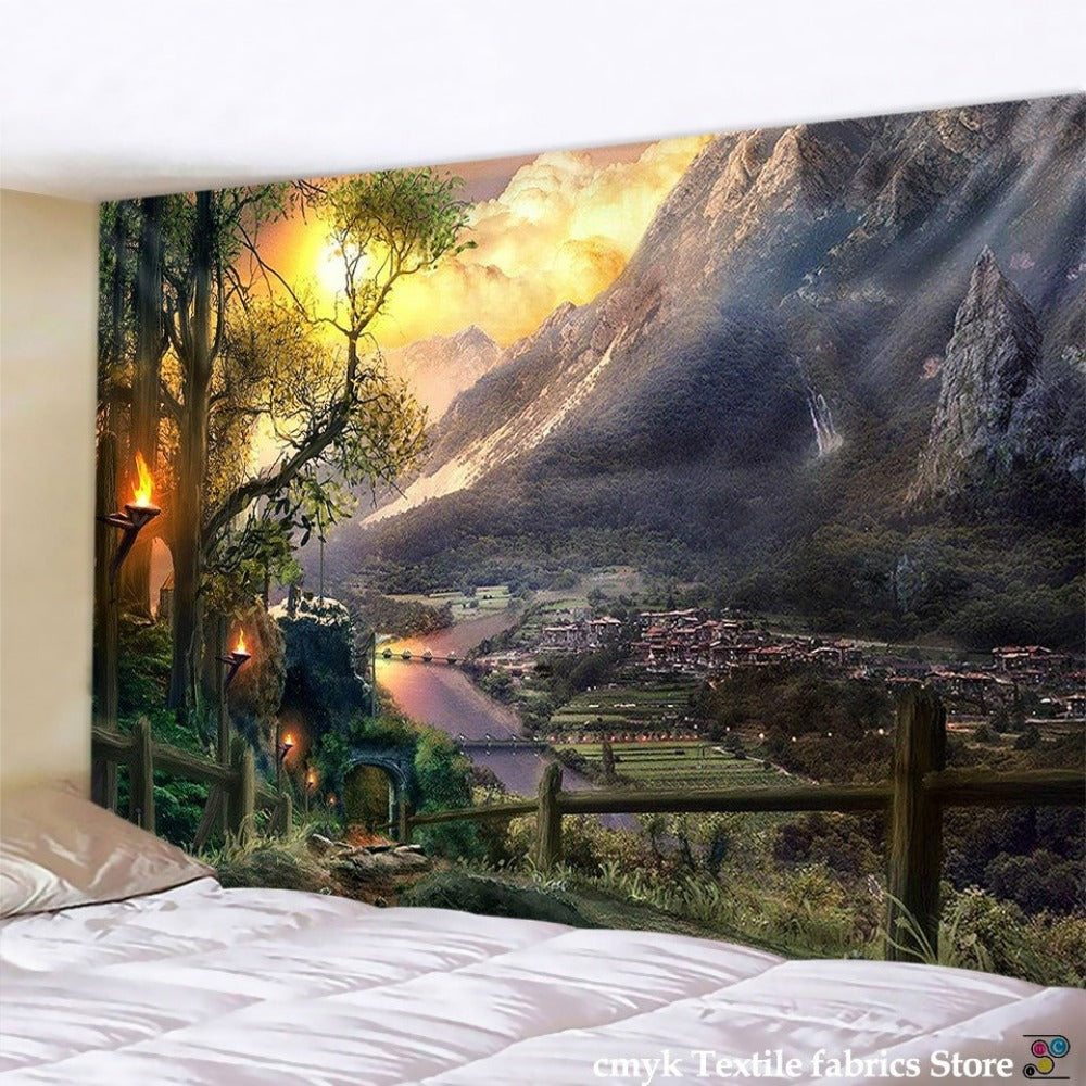 Mountain and Village Tapestry Wall Hanging Tapis Cloth has exquisite colors and clean finishing, making it a fantastic focal point for any room. These high-quality tapestries are intended to add a fashionable touch to your living room, hallway, or bedroom.