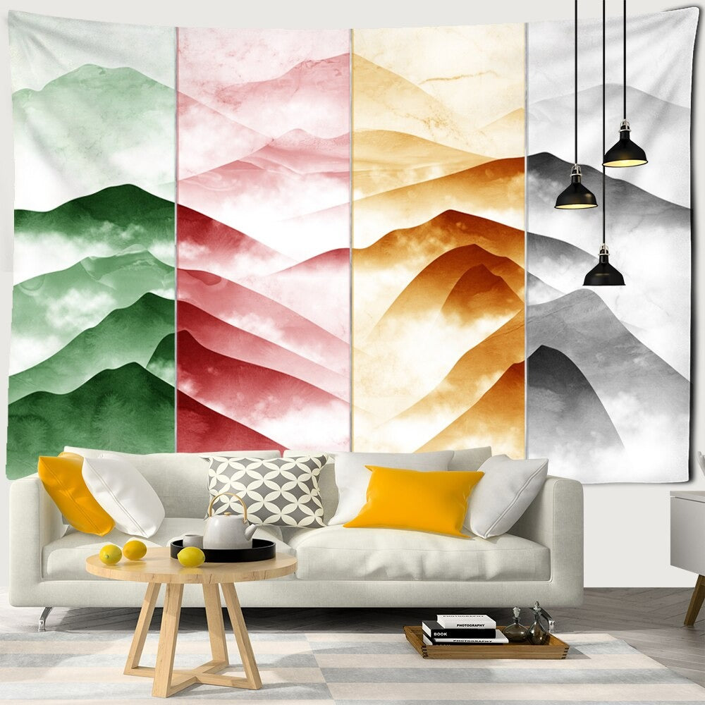 Mountain Tapestry Wall Hanging Tapis Cloth has exquisite colors and clean finishing, making it a fantastic focal point for any room. These high-quality tapestries are intended to add a fashionable touch to your living room, hallway, or bedroom.