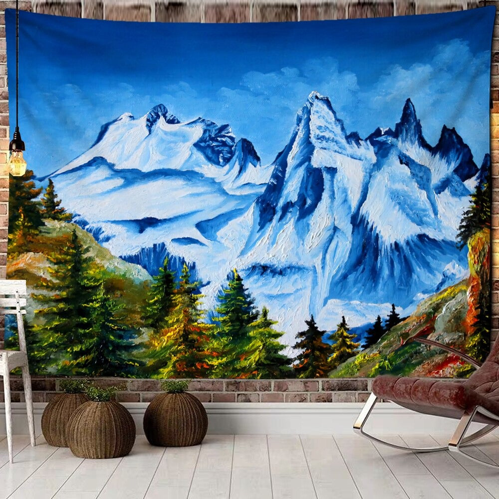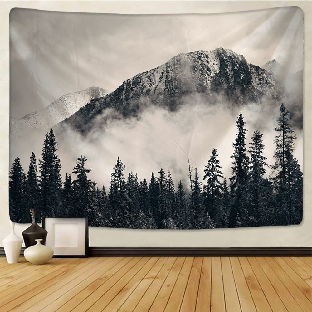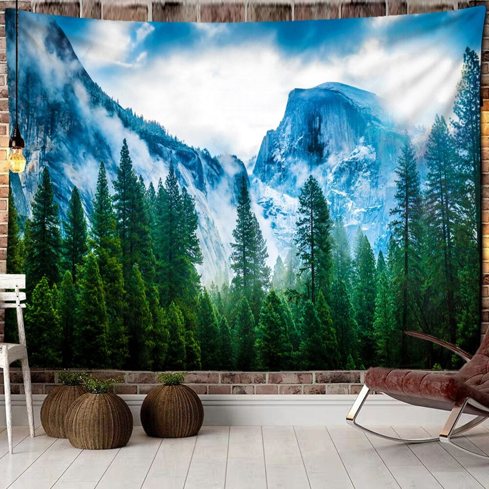 Mountains Forest Tapestry Wall Hanging Tapis Cloth has exquisite colors and clean finishing, making it a fantastic focal point for any room. These high-quality tapestries are intended to add a fashionable touch to your living room, hallway, or bedroom.
