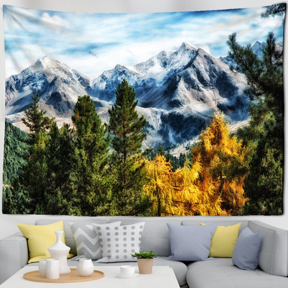 Mountains Psychedelic Tapestry Wall Hanging Tapis Cloth has exquisite colors and clean finishing, making it a fantastic focal point for any room. These high-quality tapestries are intended to add a fashionable touch to your living room, hallway, or bedroom.