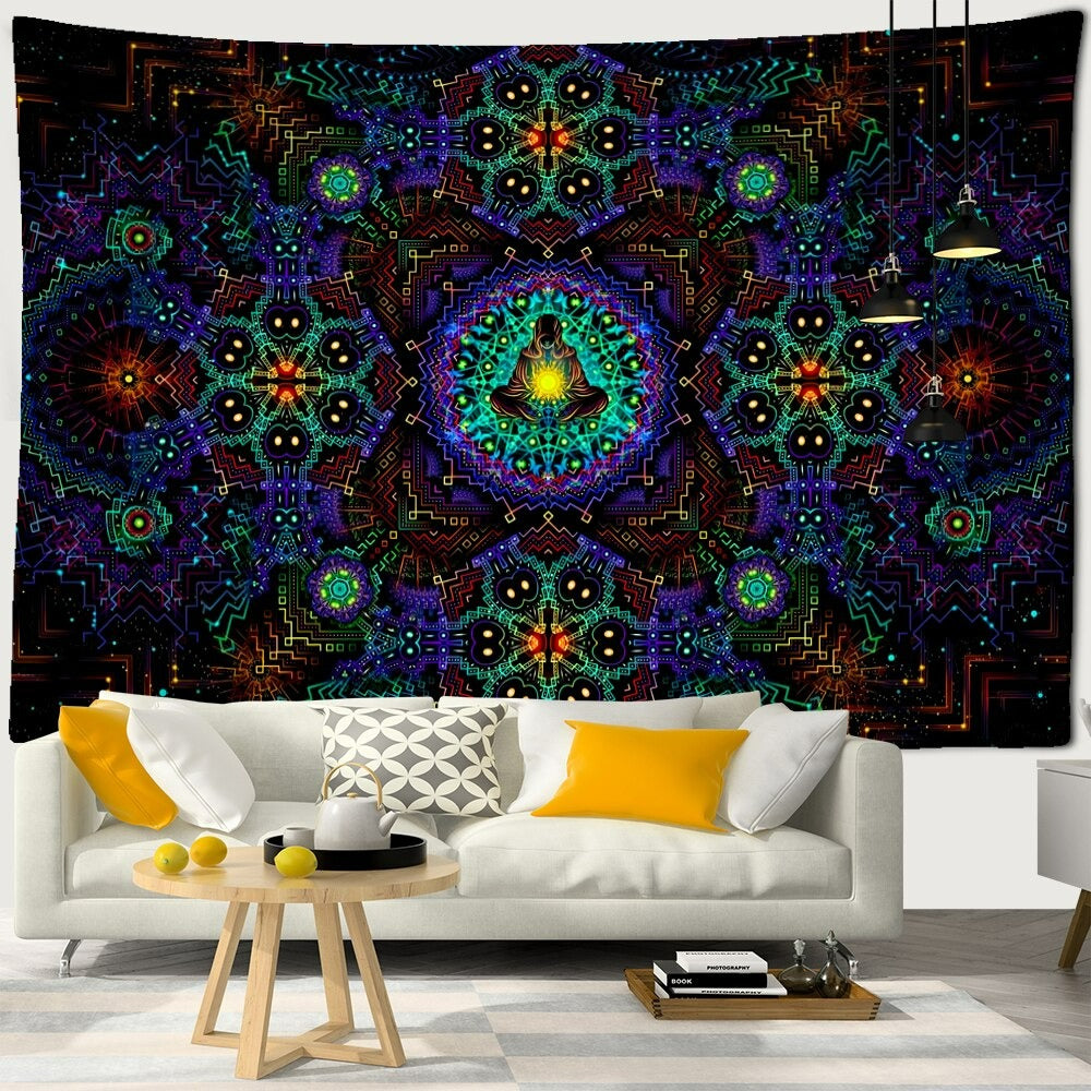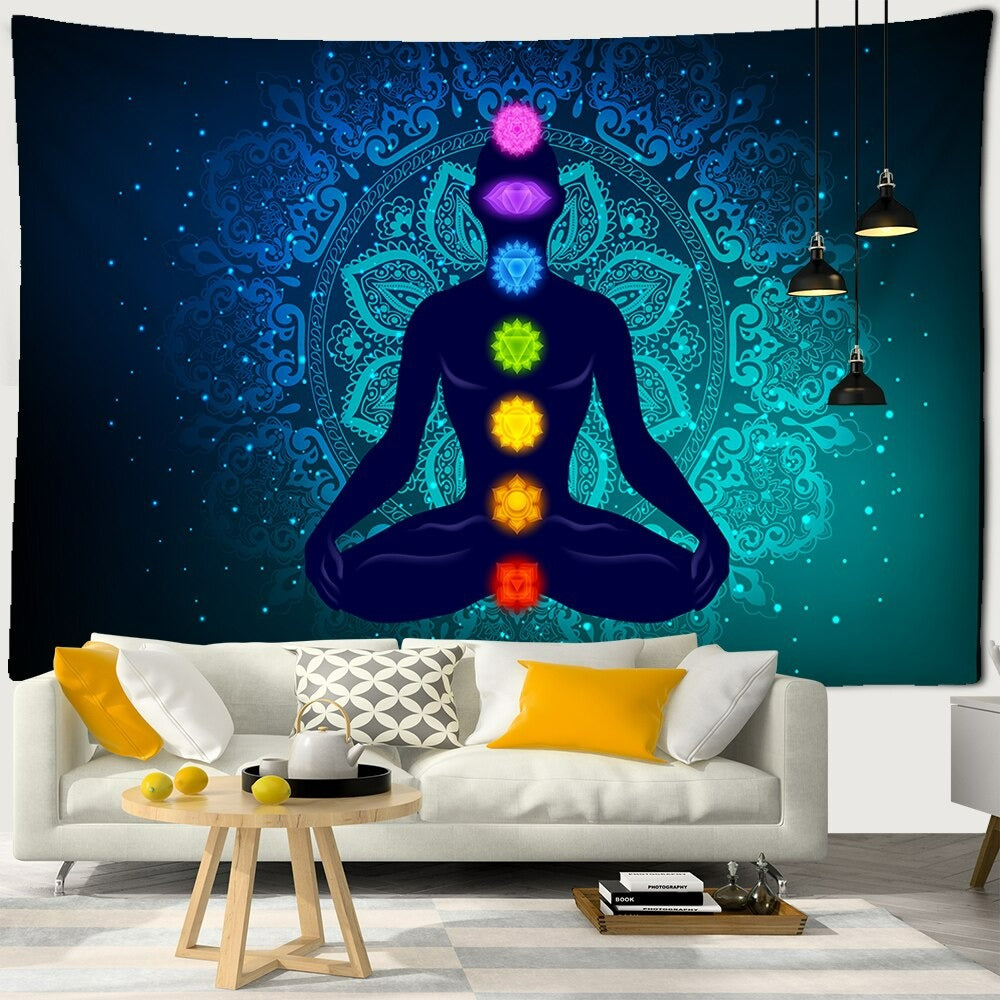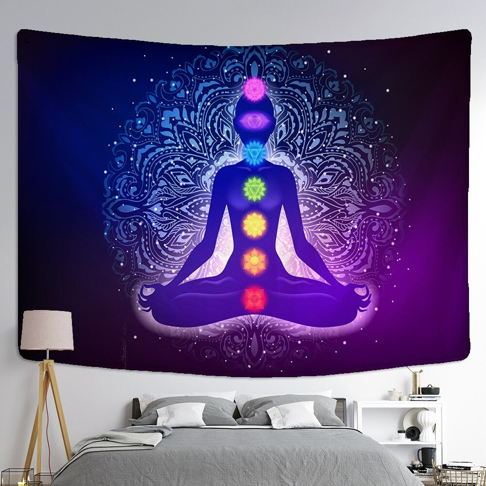 Mystic Yoga Pose Tapestry Wall Hanging Tapis Cloth has exquisite colors and clean finishing, making it a fantastic focal point for any room. These high-quality tapestries are intended to add a fashionable touch to your living room, hallway, or bedroom.