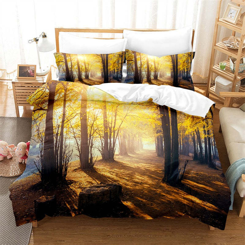 With our Natural Scenery Printed Bedding Set, you'll get immersed in the natural beauty of the forest. Get ready for your zen with this comfy and cozy set that is perfect for reading or even a nap. The 3D digital printing technology makes it easy to wash and maintain too. This is the perfect gift for your little ones to get them excited about going to sleep and waking up in the morning.