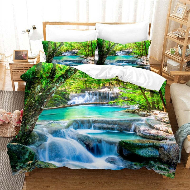The Nature Scenery Pattern Duvet Cover And Pillowcase Complete Set is an absolute masterpiece. The duvet cover features a stunning print of the natural world, with vibrant colors and intricate details that truly bring the outdoors inside. The pillowcase complements the duvet cover perfectly, with a coordinating pattern that ties the entire set together. Made from high-quality materials, this bedding set is soft to the touch and durable, ensuring a comfortable night's sleep and long-lasting use. So, if you want to transform your sleeping space into a tranquil oasis, this is the perfect choice for you.
