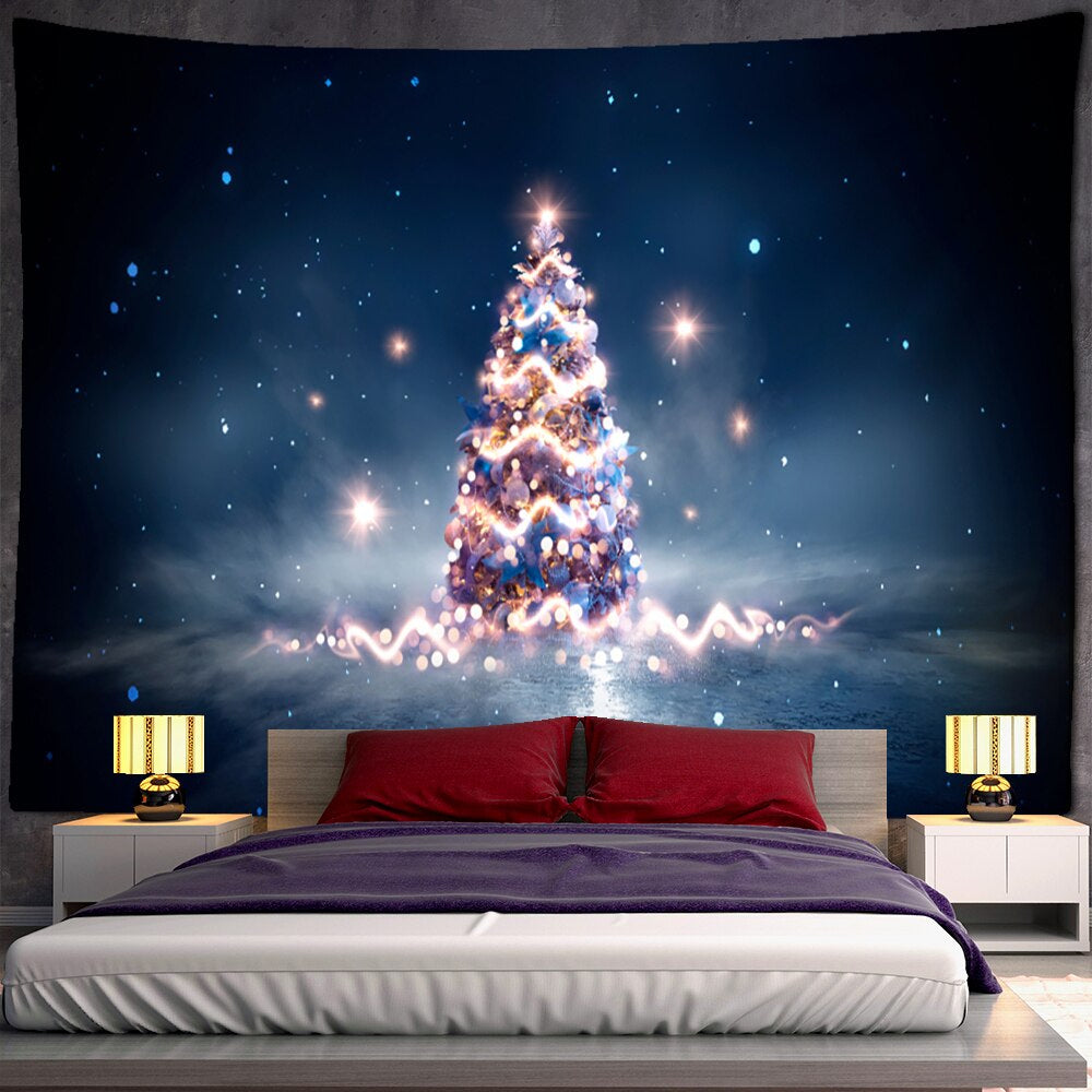 Night View Christmas Tree Tapestry Wall Hanging Tapis Cloth has exquisite colors and clean finishing, making it a fantastic focal point for any room. These high-quality tapestries are intended to add a fashionable touch to your living room, hallway, or bedroom.