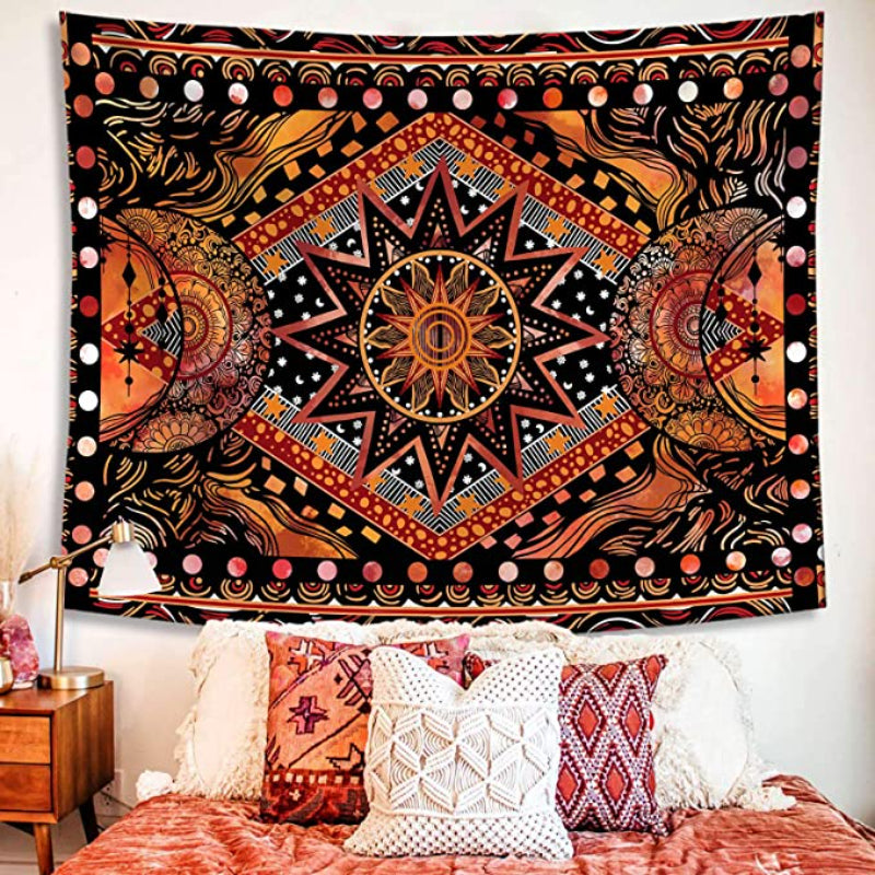 Orange Sun and Moon Tapestry Wall Hanging Tapis Cloth has exquisite colors and clean finishing, making it a fantastic focal point for any room. These high-quality tapestries are intended to add a fashionable touch to your living room, hallway, or bedroom.