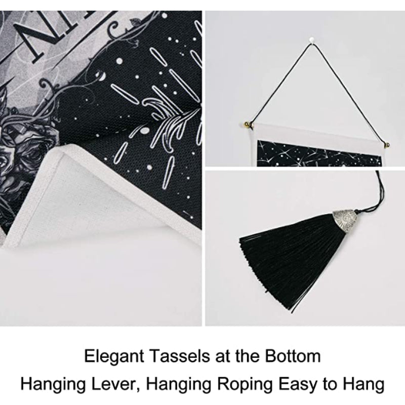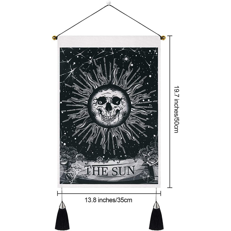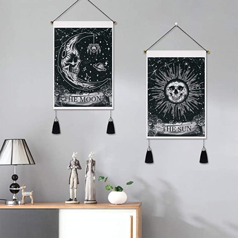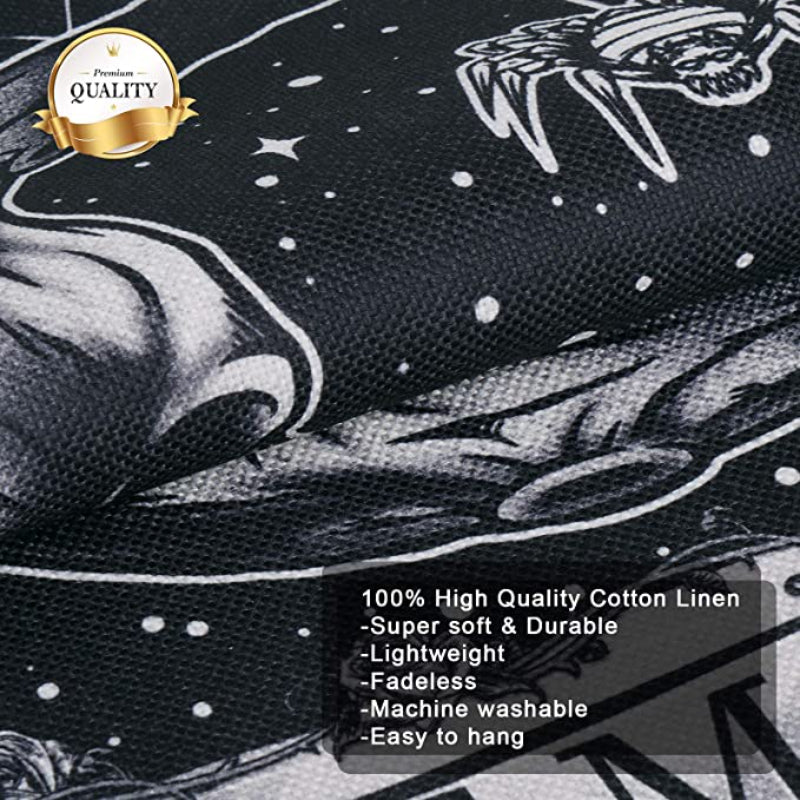This beautiful pack of 2 Moon and sun tarot card tapestries will enhance the look of your room and you will feel like you are in dreamland. This tapestry is made up of premium quality cotton which is soft and durable too. The tapestry is made up of only two different colors black and white. You can easily hang this on your wall with nails or hooks.