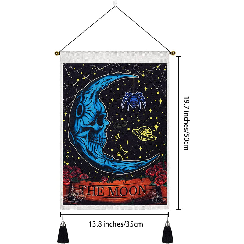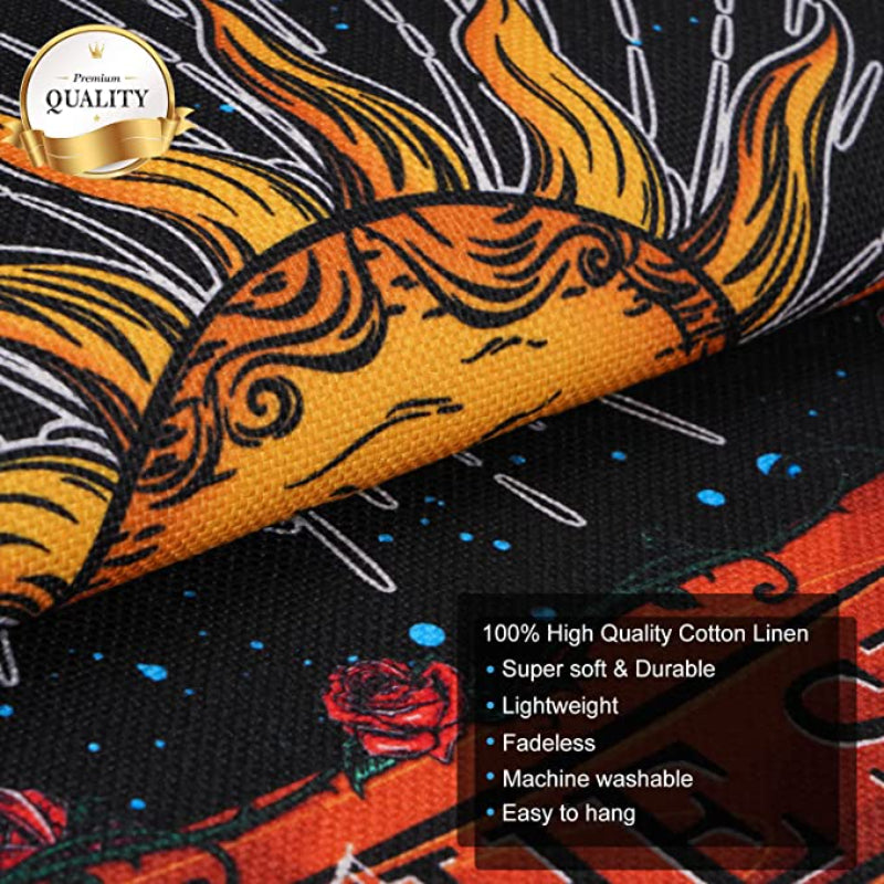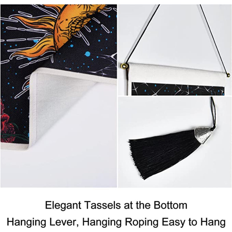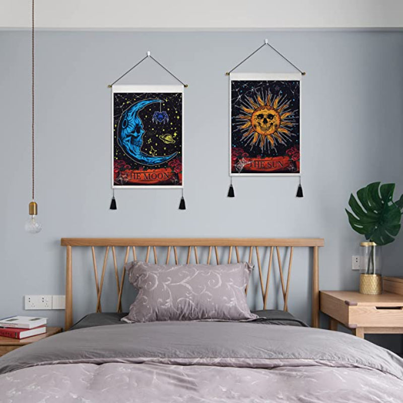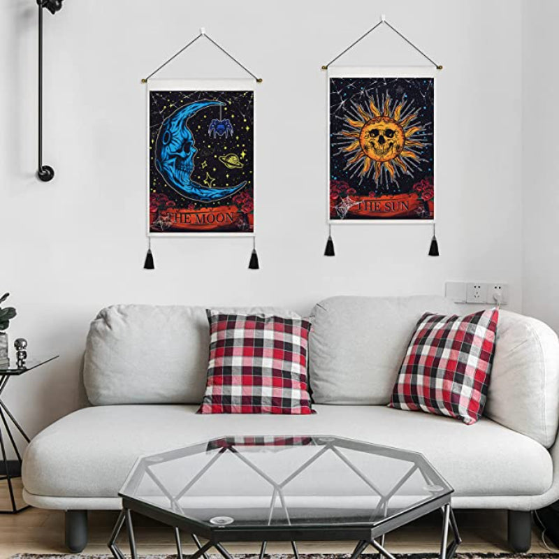 This gorgeous pack of two tarot card tapestries is a must-have for anyone looking to add a touch of magic to their home. The sun and moon tapestry is adorned with intricate tarot card symbols, while the skull floral tapestry has an eerie look that is sure to grab attention. With their eye-catching design and special features, these tapestries are sure to add a touch of mysticism to any home.
