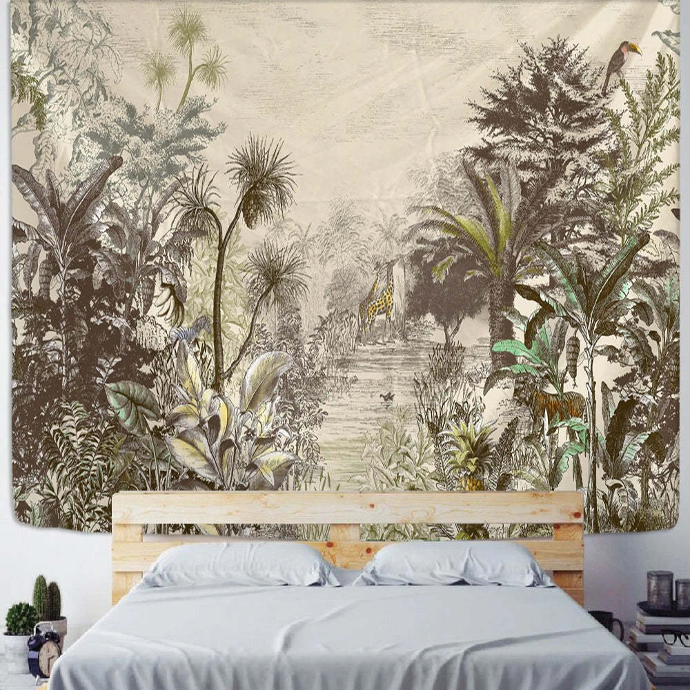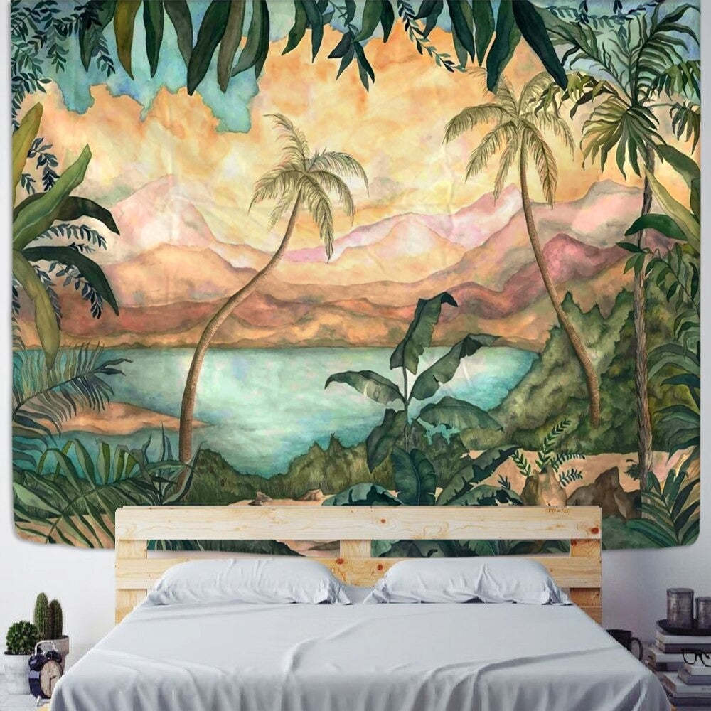 Palm Plant Print Tapestry Wall Hanging Tapis Cloth has exquisite colors and clean finishing, making it a fantastic focal point for any room. These high-quality tapestries are intended to add a fashionable touch to your living room, hallway, or bedroom.