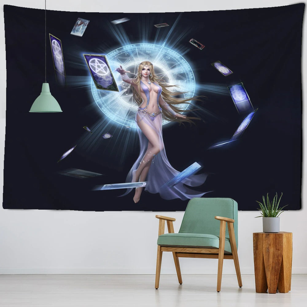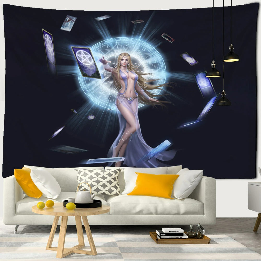 Portrait Tarot Card Tapestry Wall Hanging Tapis Cloth has exquisite colors and a clean finish, making it a fantastic focal point for any room. These high-quality tapestries are intended to add a fashionable touch to your living room, hallway, or bedroom.