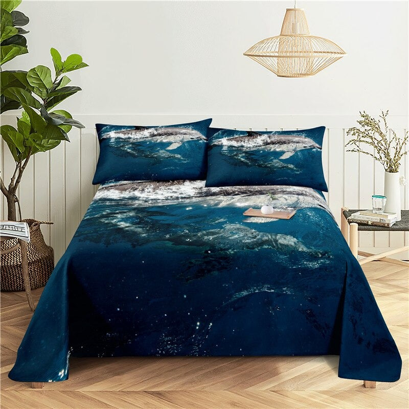 The Printed Dolphins Bedding Set is made of high-quality polyester material, ensuring durability and comfort for a good night's sleep. The bedding set features a beautiful print of dolphins swimming through the ocean, adding a playful and aquatic touch to your bedroom decor. The set includes a comforter, pillow shams, and a decorative throw pillow, allowing you to fully transform the look of your bed.
