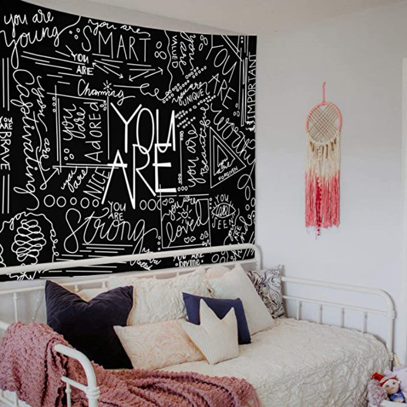The Quote You are Wall Tapestry is a beautiful and inspiring piece of wall art that adds a touch of positivity to any space. With its bold, black lettering, this tapestry is the perfect choice for any bedroom or dorm room. Whether hanging on a wall or draped over a chair, this tapestry is a must-have for anyone who wants to surround themselves with inspiration and encouragement.