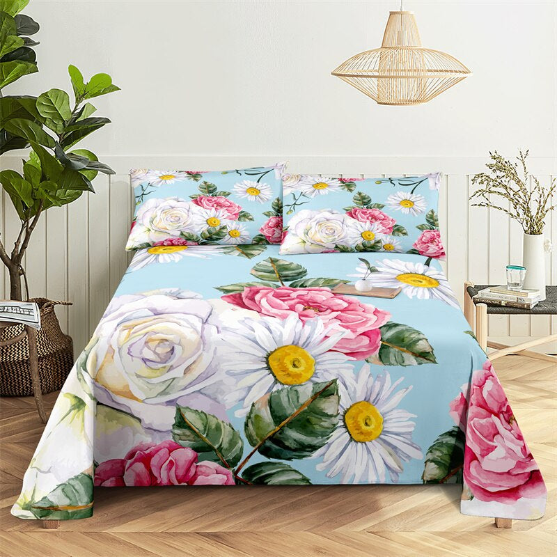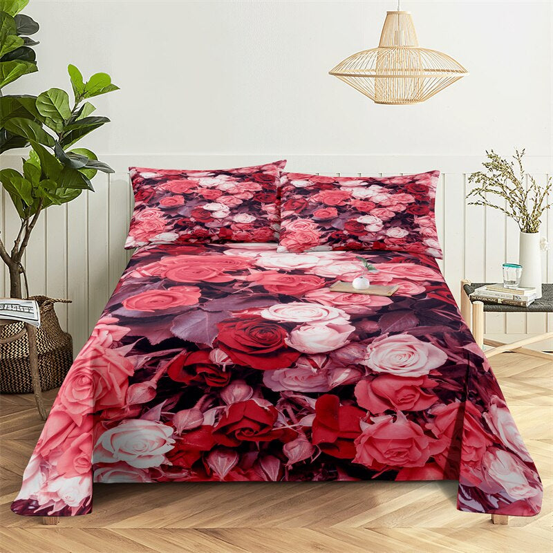 Welcome to sweet dreams with our Rose Bed Sheets And Pillowcases Bedding Set! This luxurious bedding set is crafted from a combination of polyester and cotton for a soft, cozy feel guaranteed to make you drift off into dreamland in no time. The beautiful rose pattern on the sheets will bring an adorable touch to your bedroom decor. These sheets are light yet still durable.