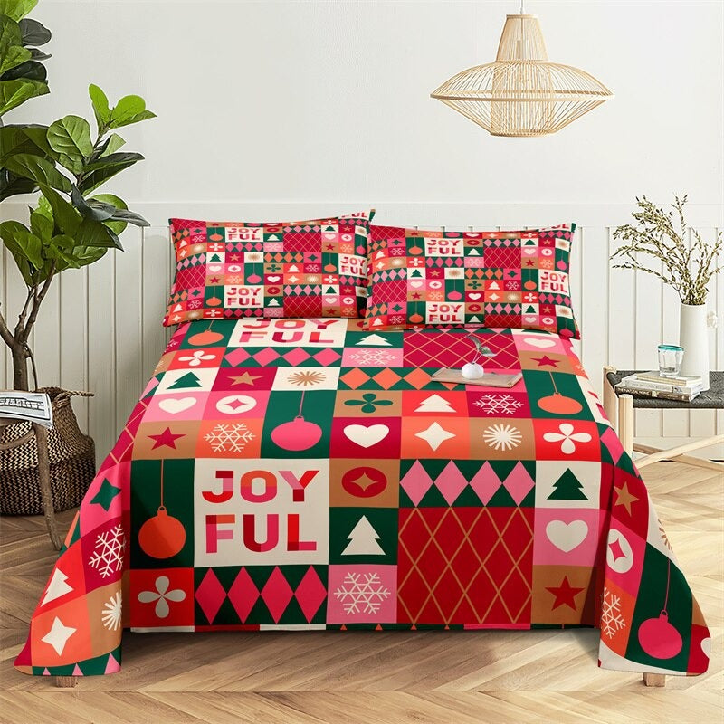 This magical Santa Claus Bedding Set is perfect for any holiday season. This festive set features a bright red background with Santa and his reindeer in the center. The set includes a comforter, two pillow shams, and a bed skirt; all adorned with festive snowflakes and white trim. The fabric is made of soft and cozy polyester for a warm and inviting night's sleep. The comforter and shams are machines washable for easy care. Transform your bedroom into a winter wonderland for the holidays with this unique Santa Claus Bedding Set!