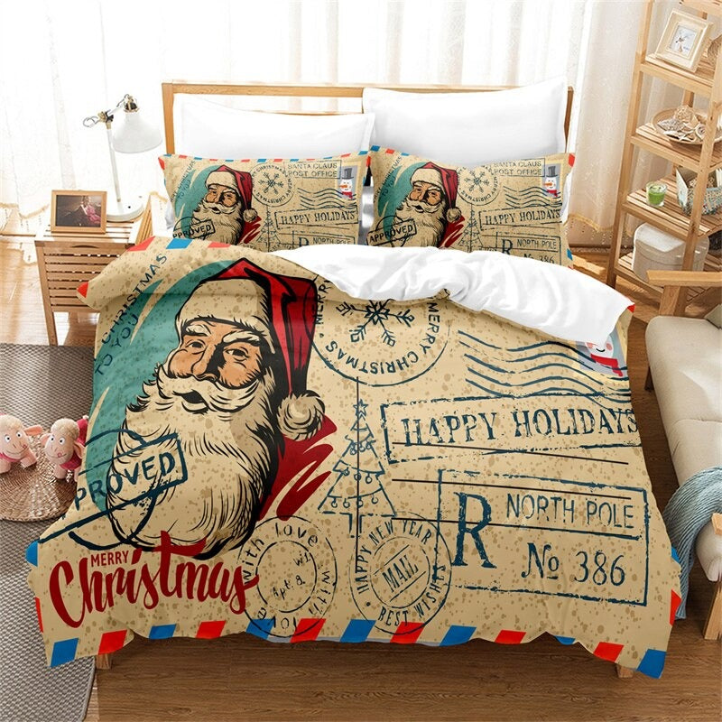 The Santa Claus Print Cover Bedding Set is perfect for any holiday season. This set features a jolly Santa print that will bring cheer to any bedroom. The bedding is made from a super soft and cozy fabric that will keep you warm and comfortable during the colder months. The set includes one duvet cover and two pillow shams, making it easy to update your bedroom style in a snap. With its vibrant colors and festive design, this bedding set will make your bedroom into a winter wonderland. Bring the holiday spirit into your home with this Santa Claus Print Cover Bedding Set.