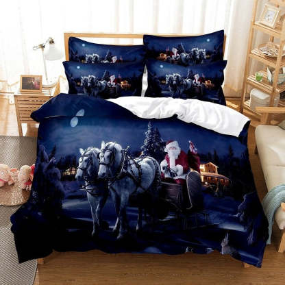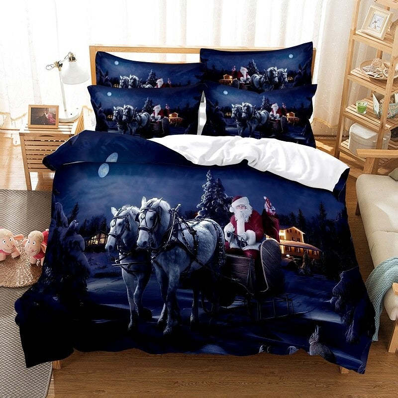 Spread holiday cheer with the Santa Print Duvet Cover Set! This festive set includes a soft microfiber duvet cover, two matching pillow shams, and a coordinating bed skirt. The duvet cover features a beautiful all-over Santa print in bright, cheerful colors, adding a touch of holiday spirit to any bedroom. The pillow shams and bed skirt complete the look and make it easy to add a cozy, festive look to your bedding. The set is machine-washable for easy care and makes a great gift for anyone who loves the holidays.