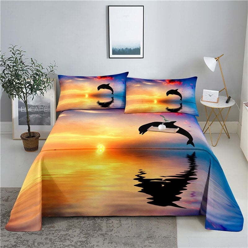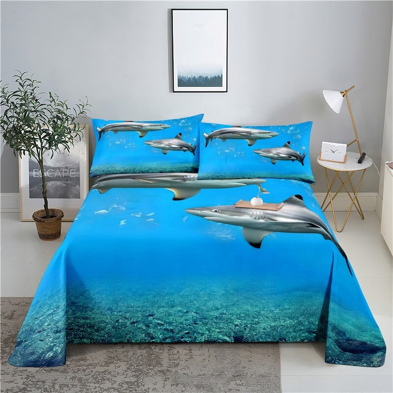 This Seafloor Bed Flat Bedding Set captures the beauty of the ocean and brings it into your home. The seafloor design features an array of vibrant colors including deep blues and greens, coral pinks, and sandy oranges. The soft microfiber fabric is lightweight and wrinkle-resistant, making it a great choice for a comfortable night's sleep. The set includes a flat sheet, a fitted sheet, and two pillowcases. The sheets are machine washable and dryer-safe for easy care. Experience the beauty of the ocean with this Seafloor Bed Flat Bedding Set.