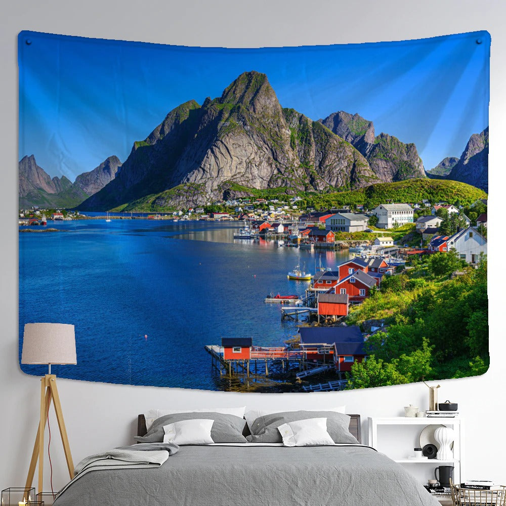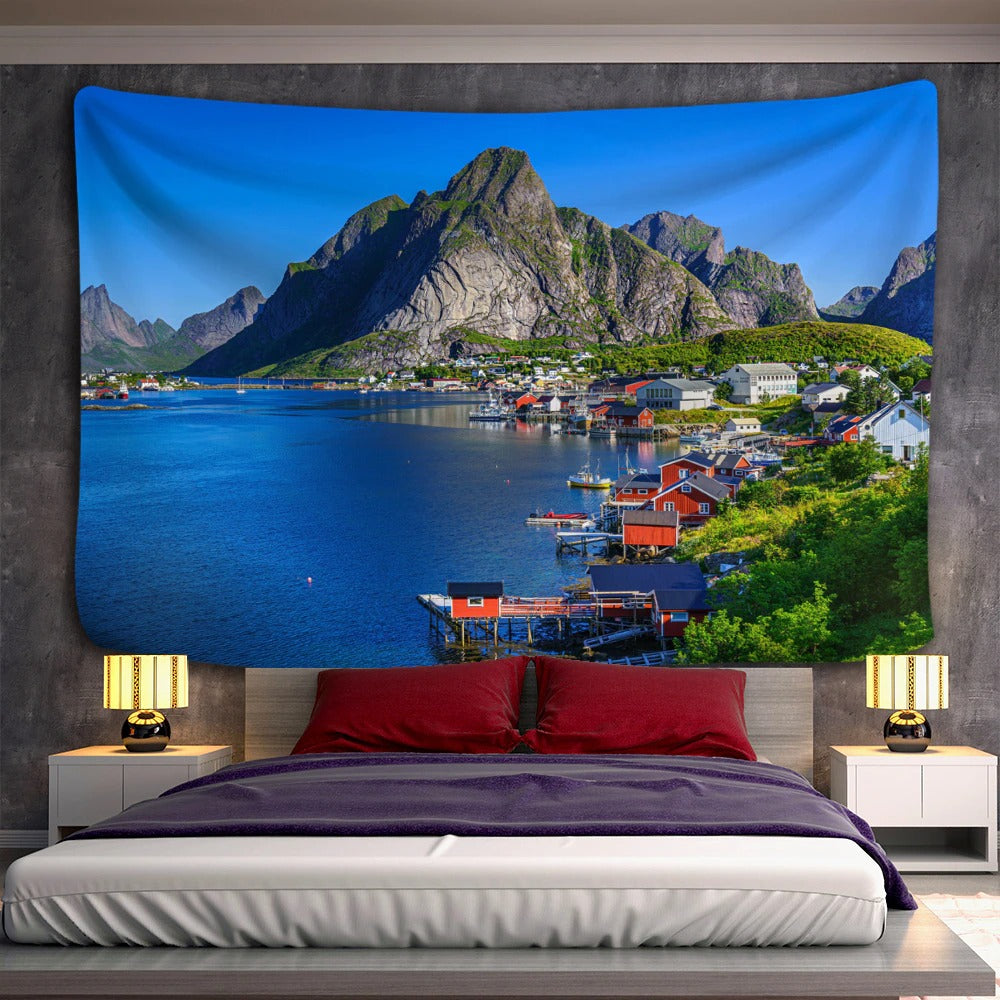 Seaside Cottage Tapestry Wall Hanging Tapis Cloth has exquisite colors and clean finishing, making it a fantastic focal point for any room. These high-quality tapestries are intended to add a fashionable touch to your living room, hallway, or bedroom.