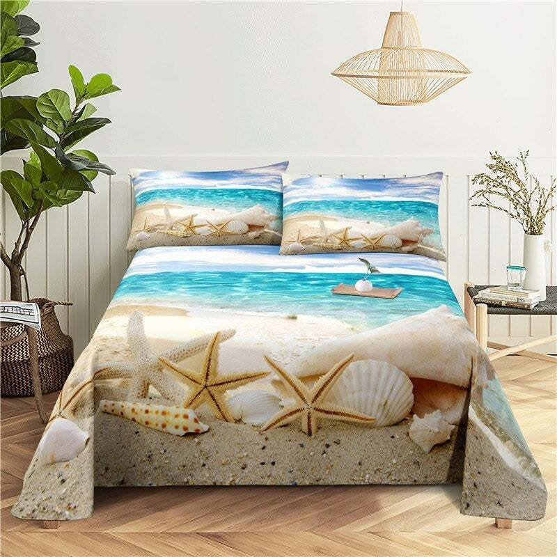 Seaside Print Bedding Set will give your bedroom a fresh, clean look with the beautiful colors of the ocean. The high-quality polyester fabric is soft and breathable, and the navy blue background is calming. The two-piece set includes pillowcases and a fitted sheet. The fitted sheet comes in many sizes for a perfect fit.
