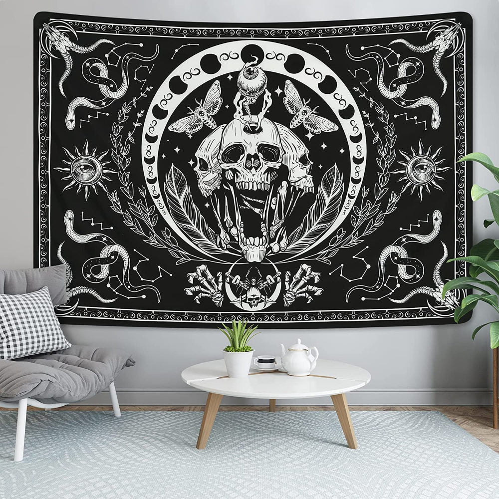 Skull Artwork Tapestry Wall Hanging Tapis Cloth has exquisite colors and clean finishing, making it a fantastic focal point for any room. These high-quality tapestries are intended to add a fashionable touch to your living room, hallway, or bedroom.