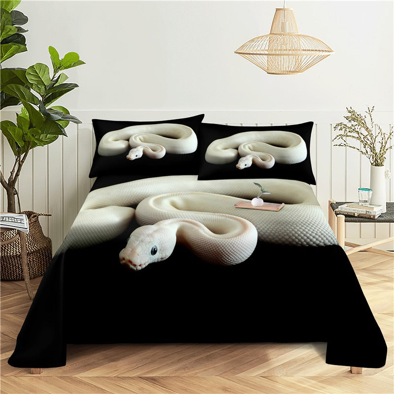 This Snake Flat Bed Bedding Set is the perfect way to give your bedroom an elegant and luxurious feel. The set includes a flat sheet, a fitted sheet, two pillowcases, and a comforter. The sheets and pillowcases are made from a silky-soft cotton blend that is breathable and comfortable. The comforter is made from a cozy, durable fleece that is sure to keep you warm on chilly nights. The set features a subtle snake-skin print that adds a hint of sophistication and style. Whether you're looking to give your bedroom a makeover or just want to add a touch of luxury, this Snake Flat Bed Bedding Set is sure to do the trick.