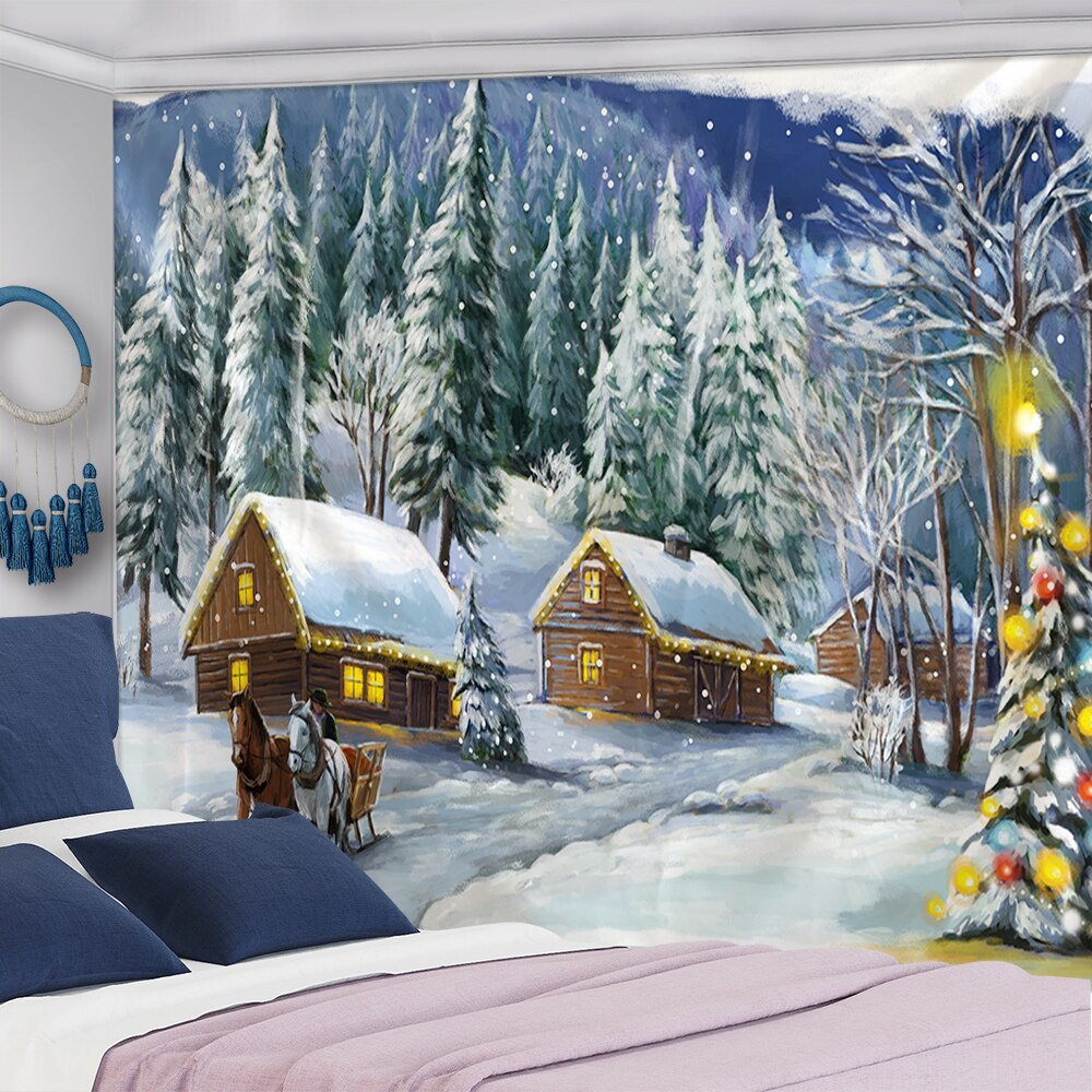 Snowman Christmas Tree Tapestry Wall Hanging Tapis Cloth has exquisite colors and clean finishing, making it a fantastic focal point for any room. These high-quality tapestries are intended to add a fashionable touch to your living room, hallway, or bedroom.