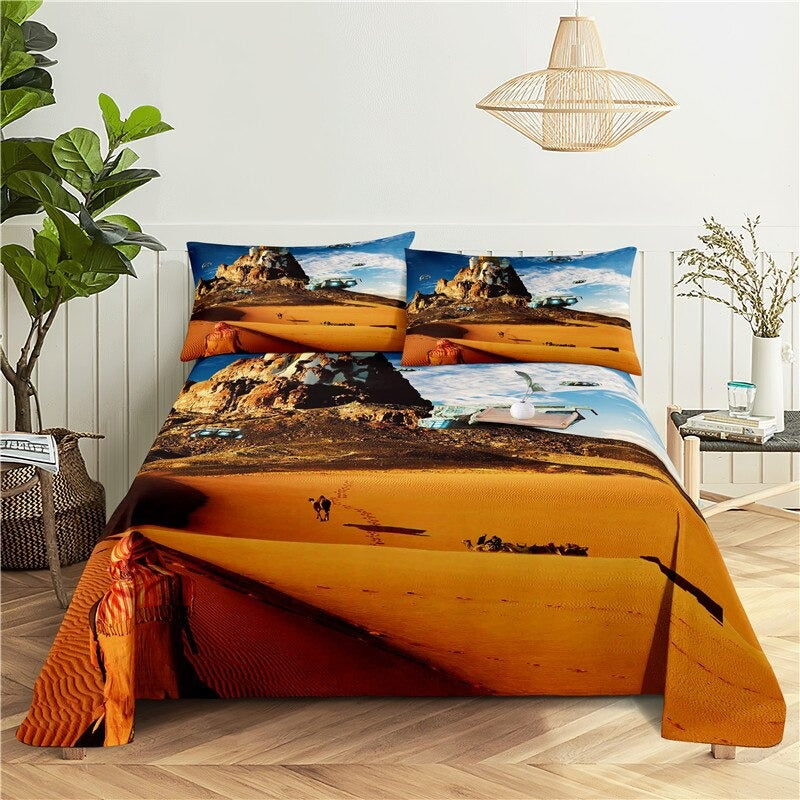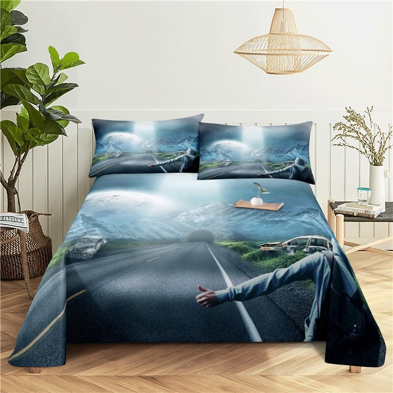 The design of the stars and moon on the cover of this bedding set creates a striking look. The fabric is durable and comfortable, and the colors can be mixed and matched for a personalized look. The Spacecraft Printed Bedding Set has a duvet cover and pillowcases. The vibrant colors and intricate design make this sheet a stylish and fashionable addition to any bedding set.