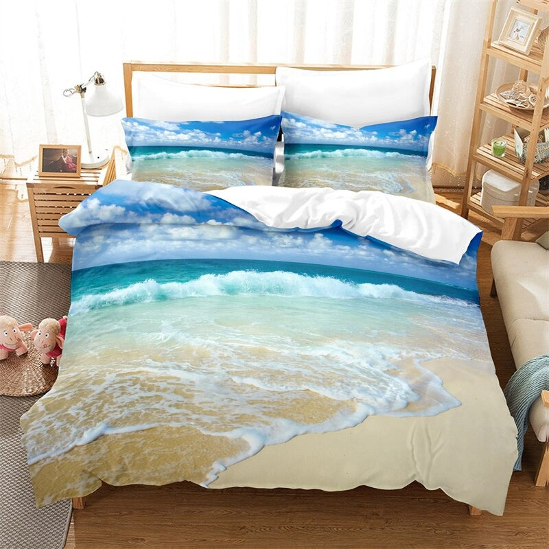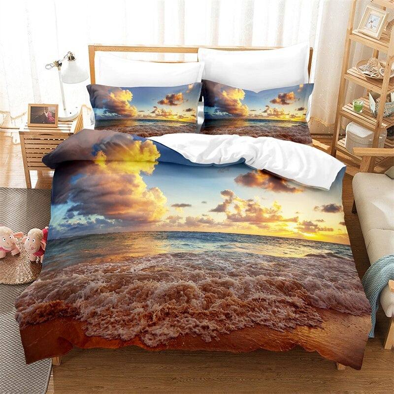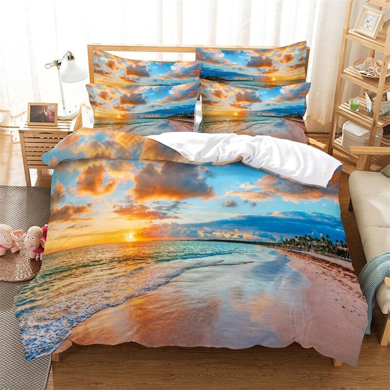 \The Starfish Beach Scenery Duvet Cover Set is the ideal way to bring a touch of comfort to your bedroom decor because it is constructed of soft and cozy cotton and polyester blend. Each set comes with a customized package for your entire bed. You can use it at home, and it will promote sound sleep.