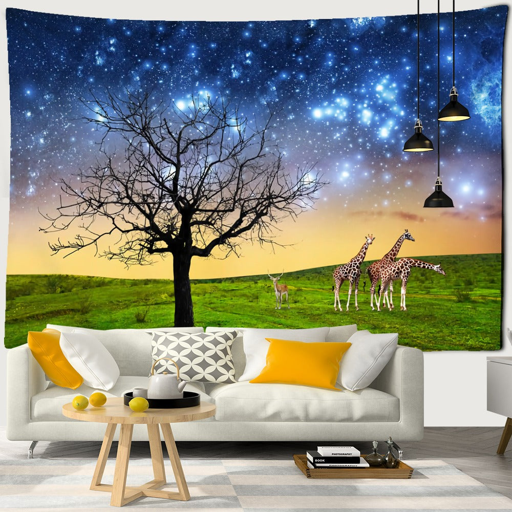 Starry Sky And Deer Tapestry Wall Hanging Tapis Cloth has exquisite colors and clean finishing, making it a fantastic focal point for any room. These high-quality tapestries are intended to add a fashionable touch to your living room, hallway, or bedroom.