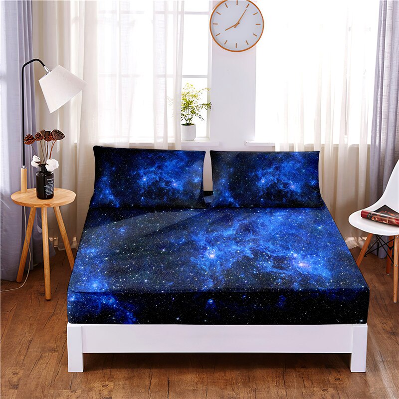 The Starry Sky Digital Printed 3pc Polyester Fitted Bedsheet is the perfect addition to any bedroom. It is made from high-quality polyester, this bedsheet is soft, smooth, and durable. The digital print features a beautiful starry sky design that will transport you to a peaceful, celestial world every time you climb onto the bed. The fitted sheet has a wonderful design and elastic all around, ensuring a secure fit on your mattress.