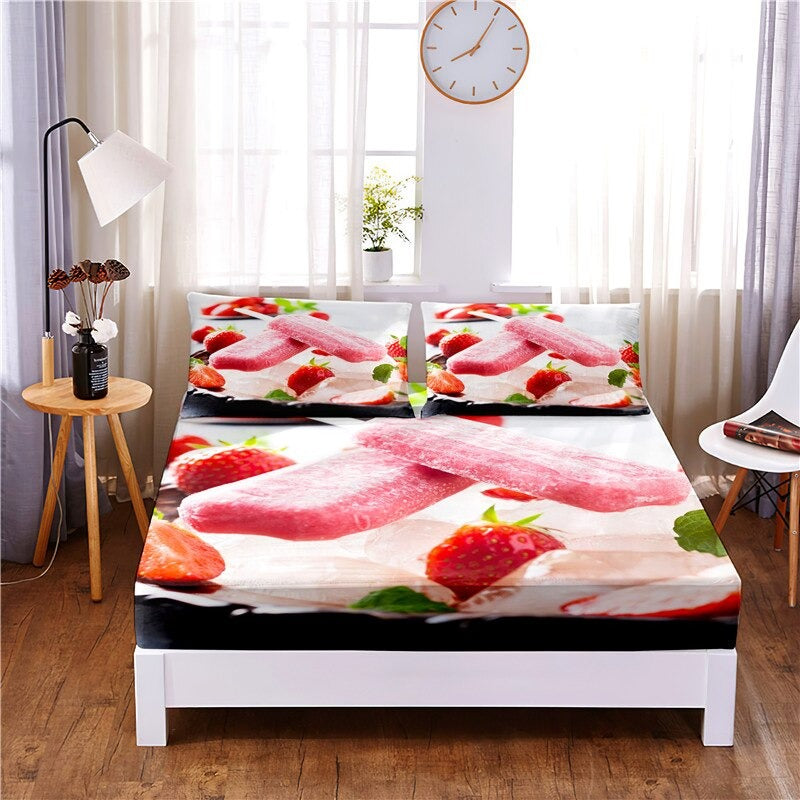 The Strawberry Digital Printed 3 Pc Fitted Sheet is a vibrant and colorful bedding set that is sure to brighten up any bedroom. This set includes three fitted sheets, each featuring a bold and lively strawberry print that is sure to add a touch of whimsy to your bedding. Made from soft and durable polyester and cotton blend, these fitted sheets are comfortable to sleep on and easy to care for. They have a fitted design that snugly fits over your mattress, ensuring that they stay in place all night long.
