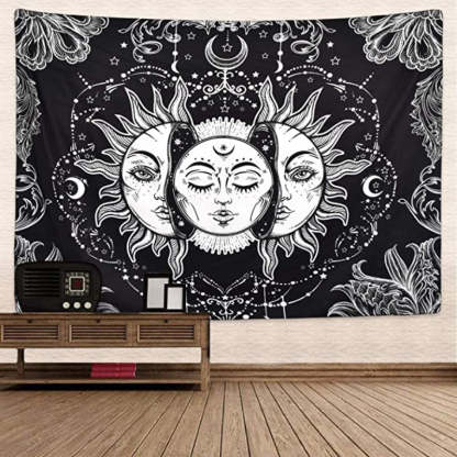 The adorable sun and moon motif of this tapestry will instantly add an ethereal feel to your living space and will bring a dreamy touch to your bedroom. Hang this tapestry in your living room or bedroom for a dramatic and eye-catching look, or use this tapestry as a backdrop for your photo shoots. The classic and timeless design of this tapestry will never go out of style and will remain a timeless piece in your home.