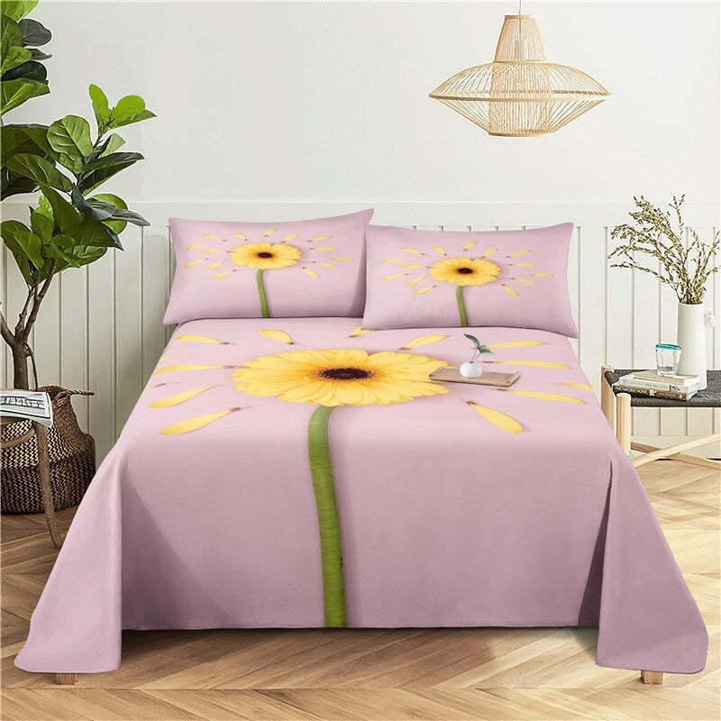 Sunflower Digital Print Bedding Set is a cheerful and vibrant addition to any bedroom. Made from high-quality polyester material, this bedding set is soft comfortable, and durable. The bright yellow flowers are depicted against a white background creating a fresh and sunny atmosphere. The bold and vibrant colors of the print are sure to bring a touch of cheer to any room.