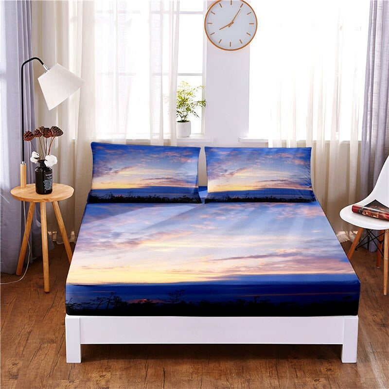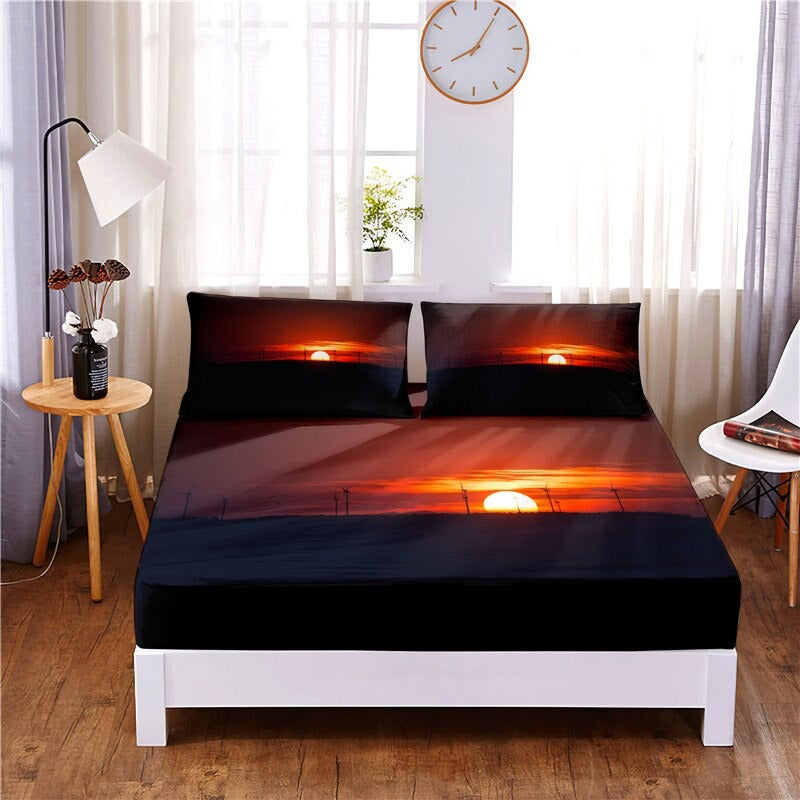 The Sunset Print Fitted Sheet Bedding Set is the ideal sheet material set for the family who loves to travel. This sheet material set is carefully printed and made of fine polyester. This sheet material set is planned with a large number of varieties of shades, so you can find the ideal setting to accommodate your family.