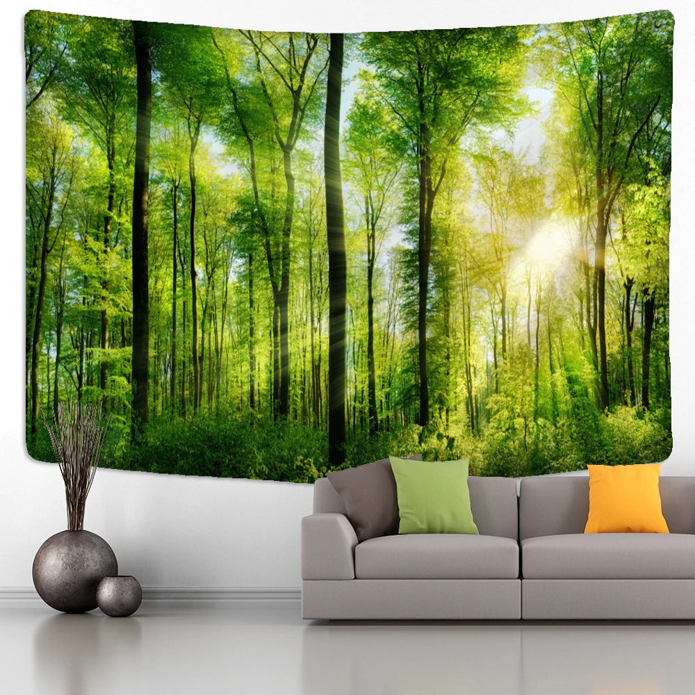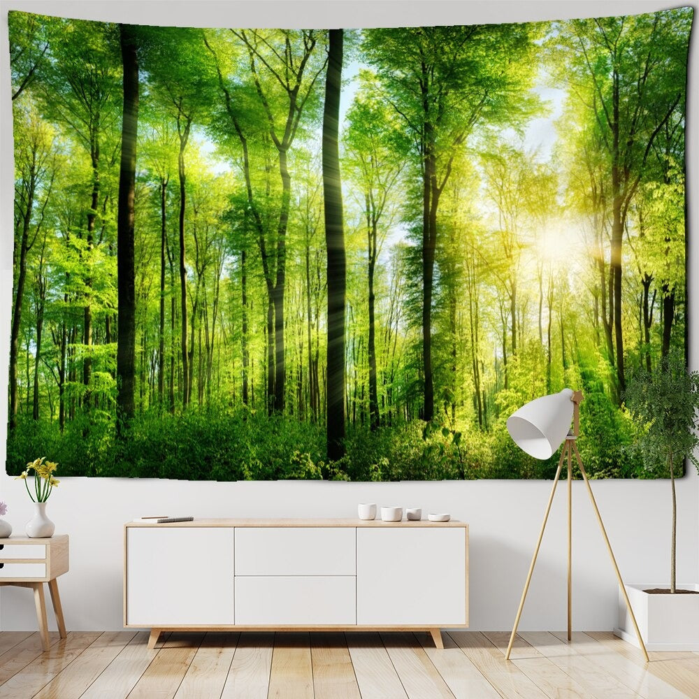 Sunshine Green Forest Tapestry Wall Hanging has exquisite colors and clean finishing, making it a fantastic focal point for any room. These high-quality tapestries are intended to add a fashionable touch to your living room, hallway, or bedroom.