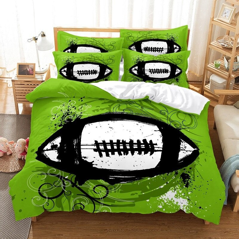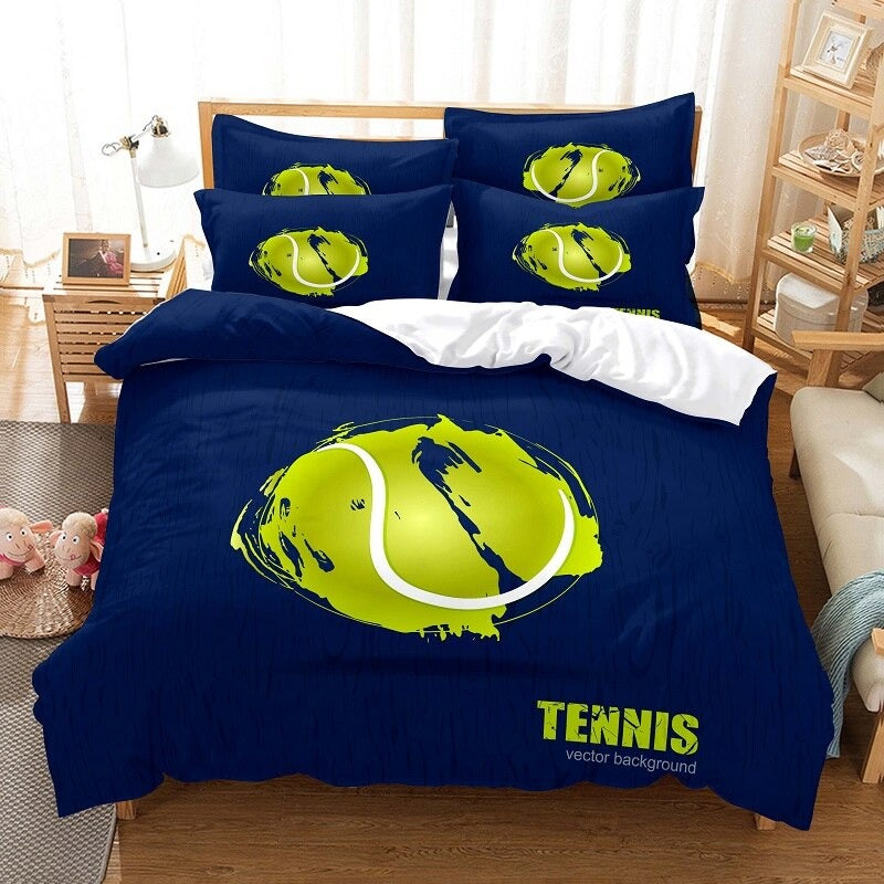 The Tennis Boy Duvet Cover Set is a sophisticated and elegant bedding ensemble that is perfect for any tennis enthusiast. Made from high-quality, 100% polyester microfiber fabric, this duvet cover set is soft to the touch and feels luxurious against the skin. The color scheme is a classic one, with a charming illustration of a young tennis player in action on the front.