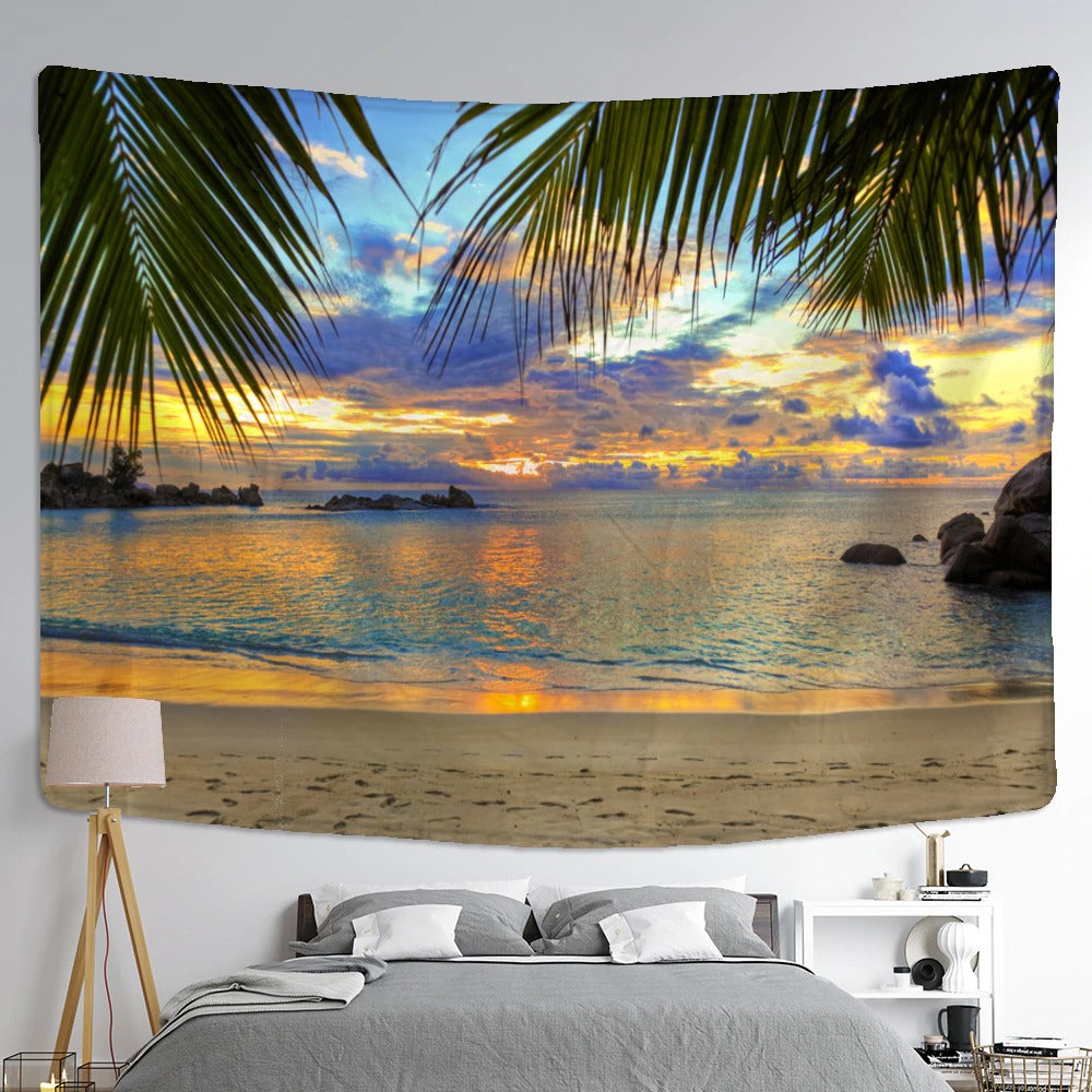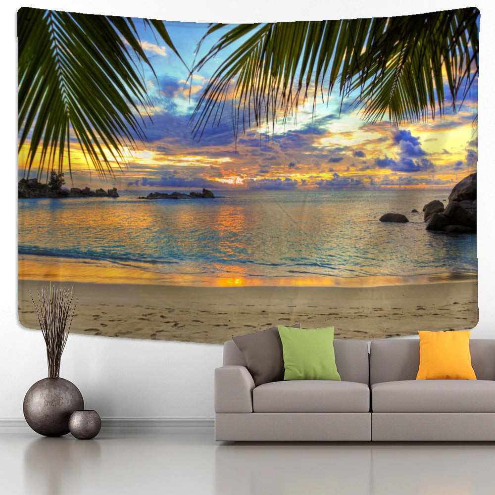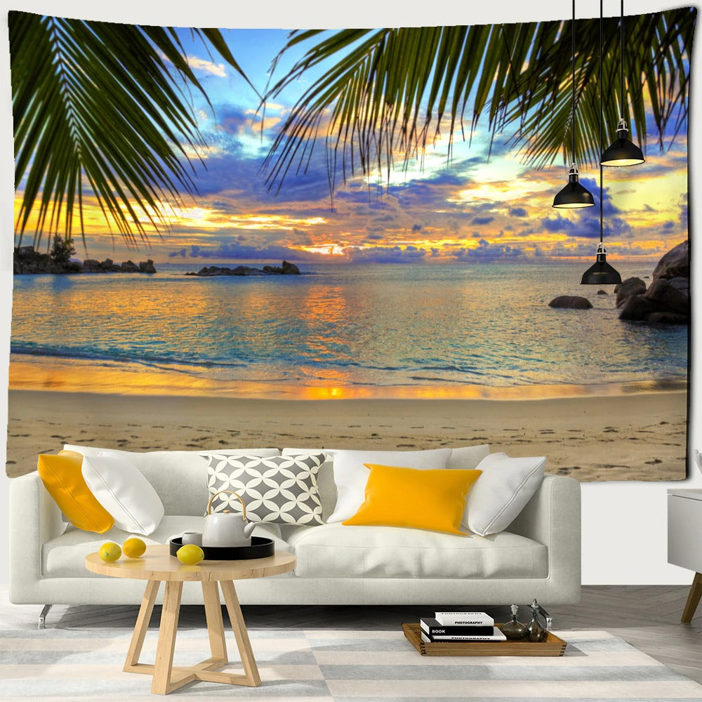 The Beach Sunset Wall Hanging Tapis Cloth has exquisite colors and clean finishing, making it a fantastic focal point for any room. These high-quality tapestries are intended to add a fashionable touch to your living room, hallway, or bedroom.