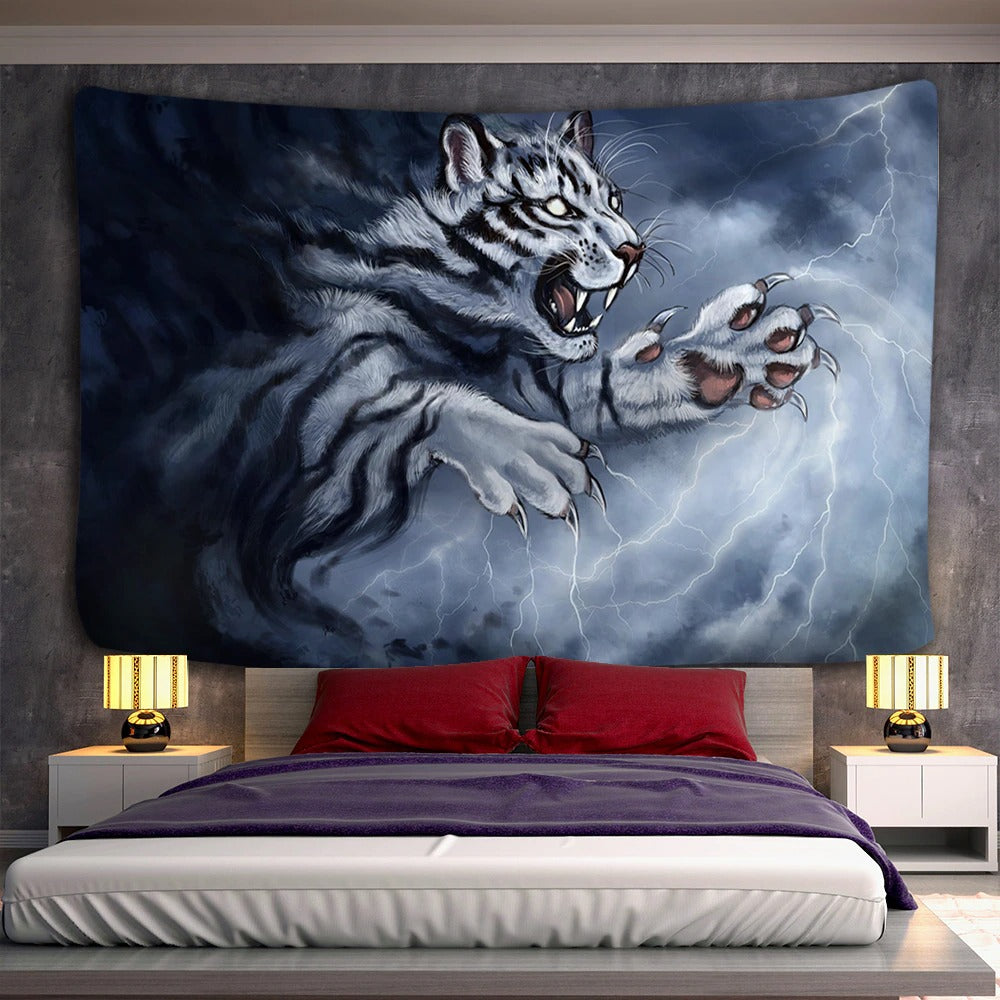 Tiger Fashion Tapestry Wall Hanging Tapis Cloth has exquisite colors and clean finishing, making it a fantastic focal point for any room. These high-quality tapestries are intended to add a fashionable touch to your living room, hallway, or bedroom.