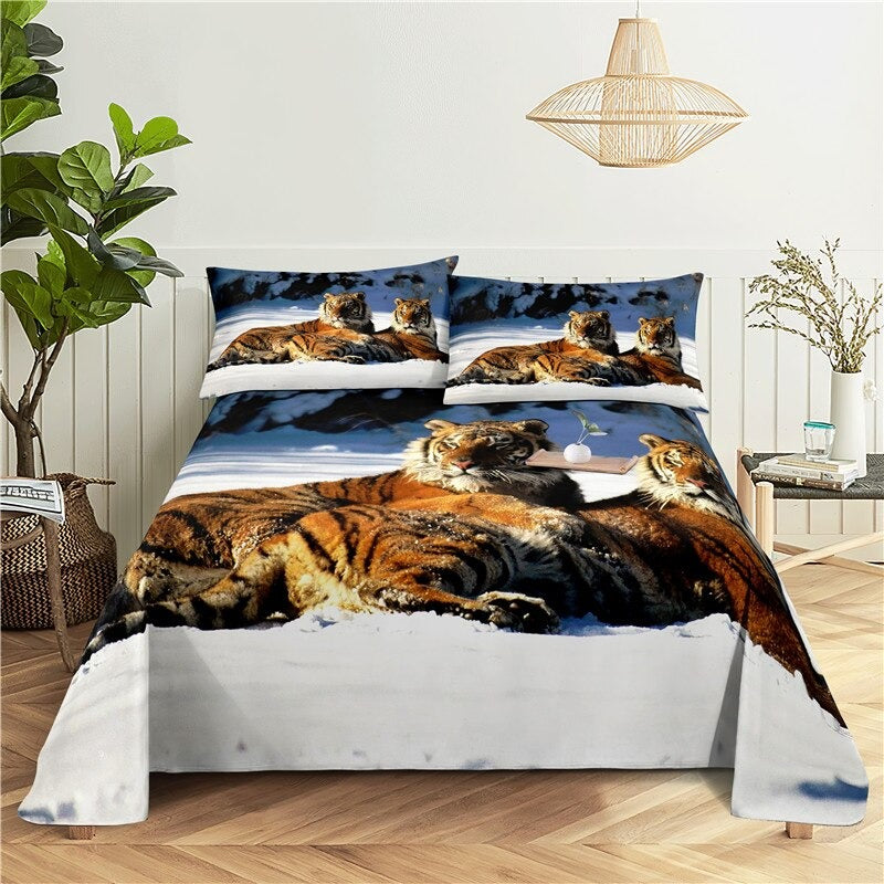 This eye-catching Tiger Printed Bedding Set is perfect for any wild animal lover! This set includes a bold tiger print comforter and matching pillow shams. The comforter is lightweight and filled with down-alternative fill for a cozy and comfortable sleep. The fabric is made of 100% microfiber, making it soft and smooth to the touch. The bold and colorful tiger print stands out against the neutral background, making it a great centerpiece in any bedroom. The set is machine washable for easy care. Make any bedroom roar with this Tiger Printed Bedding Set!